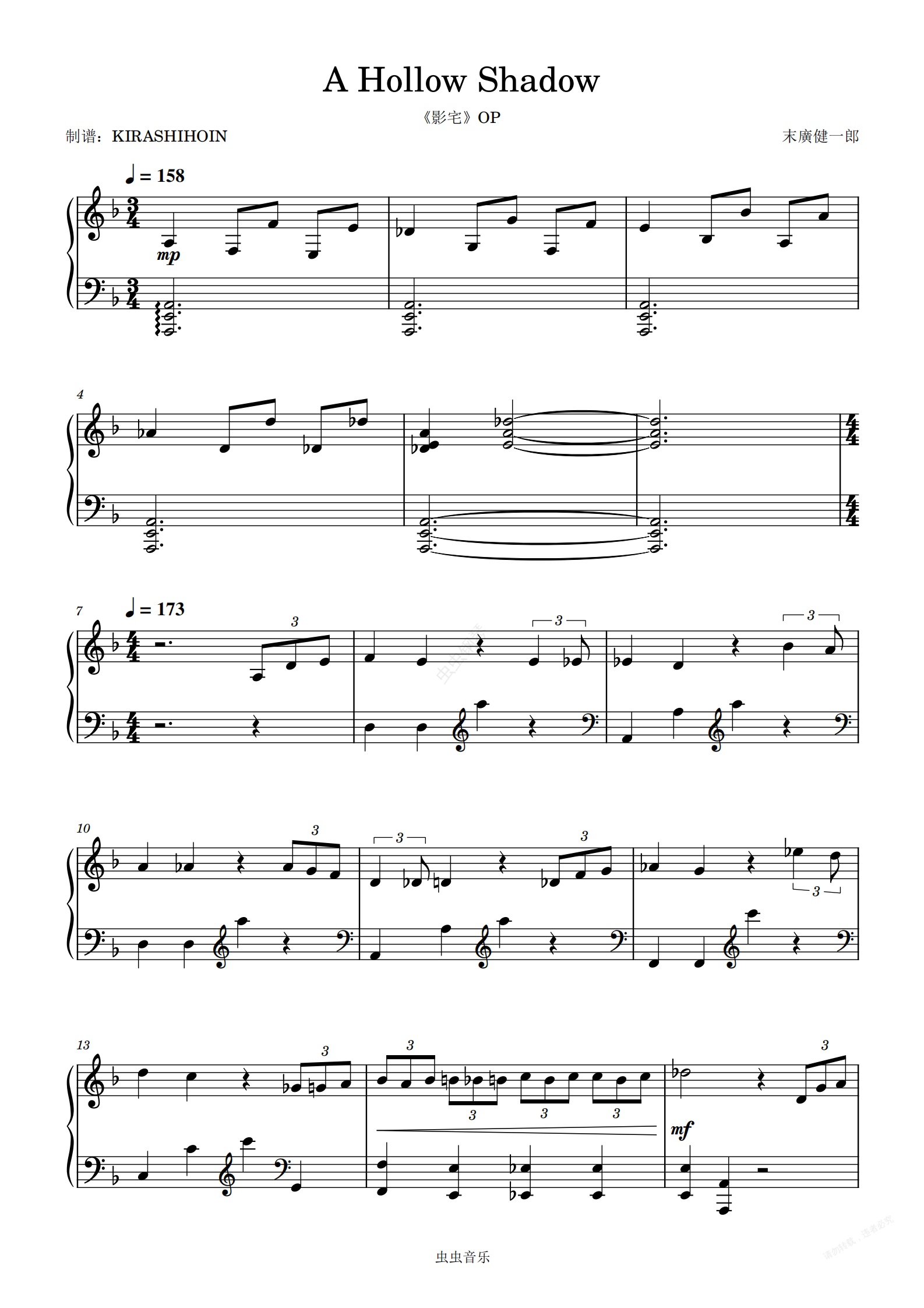 钢琴谱:A Hollow Shadow(《影宅》OP)