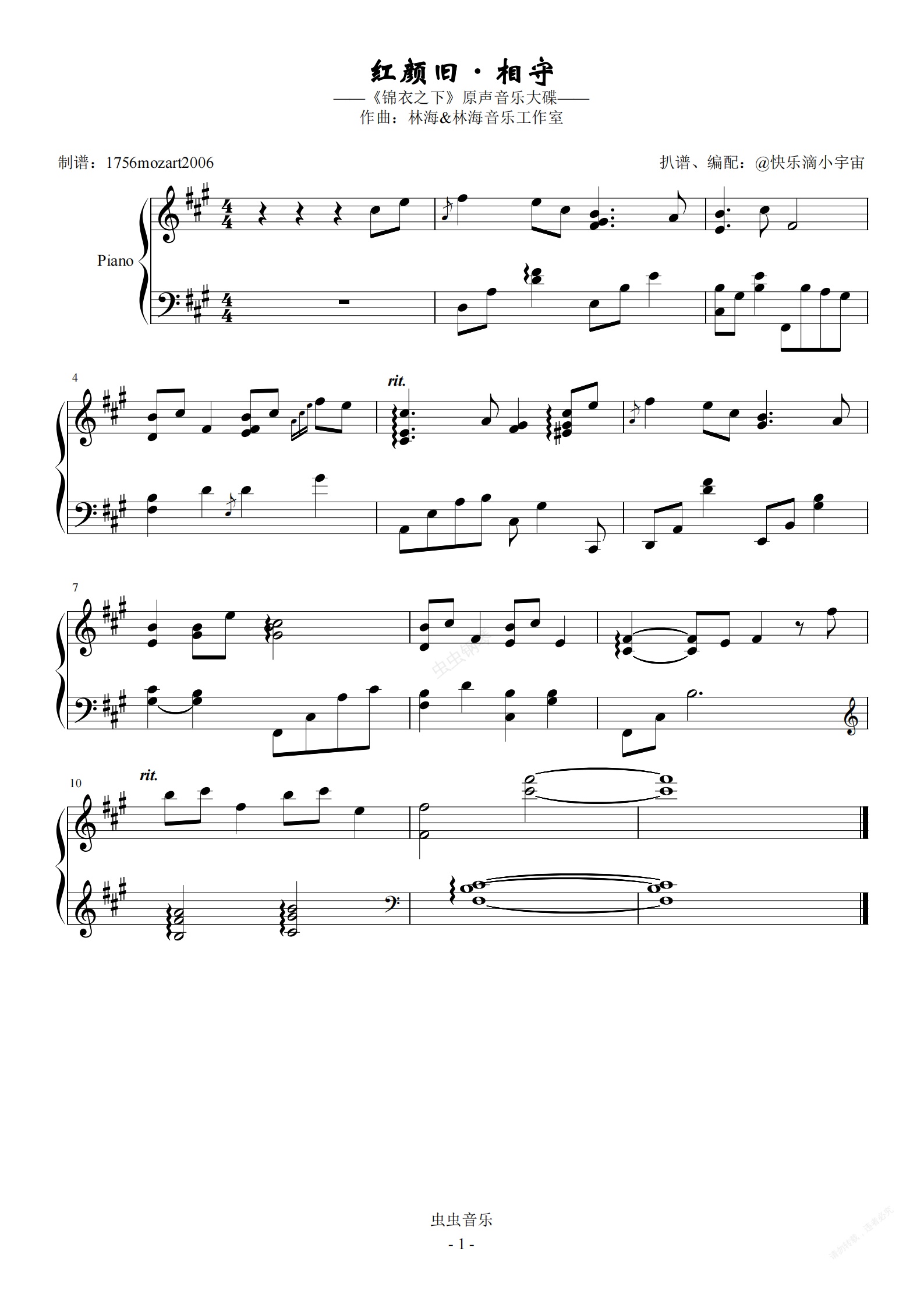 钢琴谱:红颜旧·相守(电视剧《锦衣之下》原声ost)