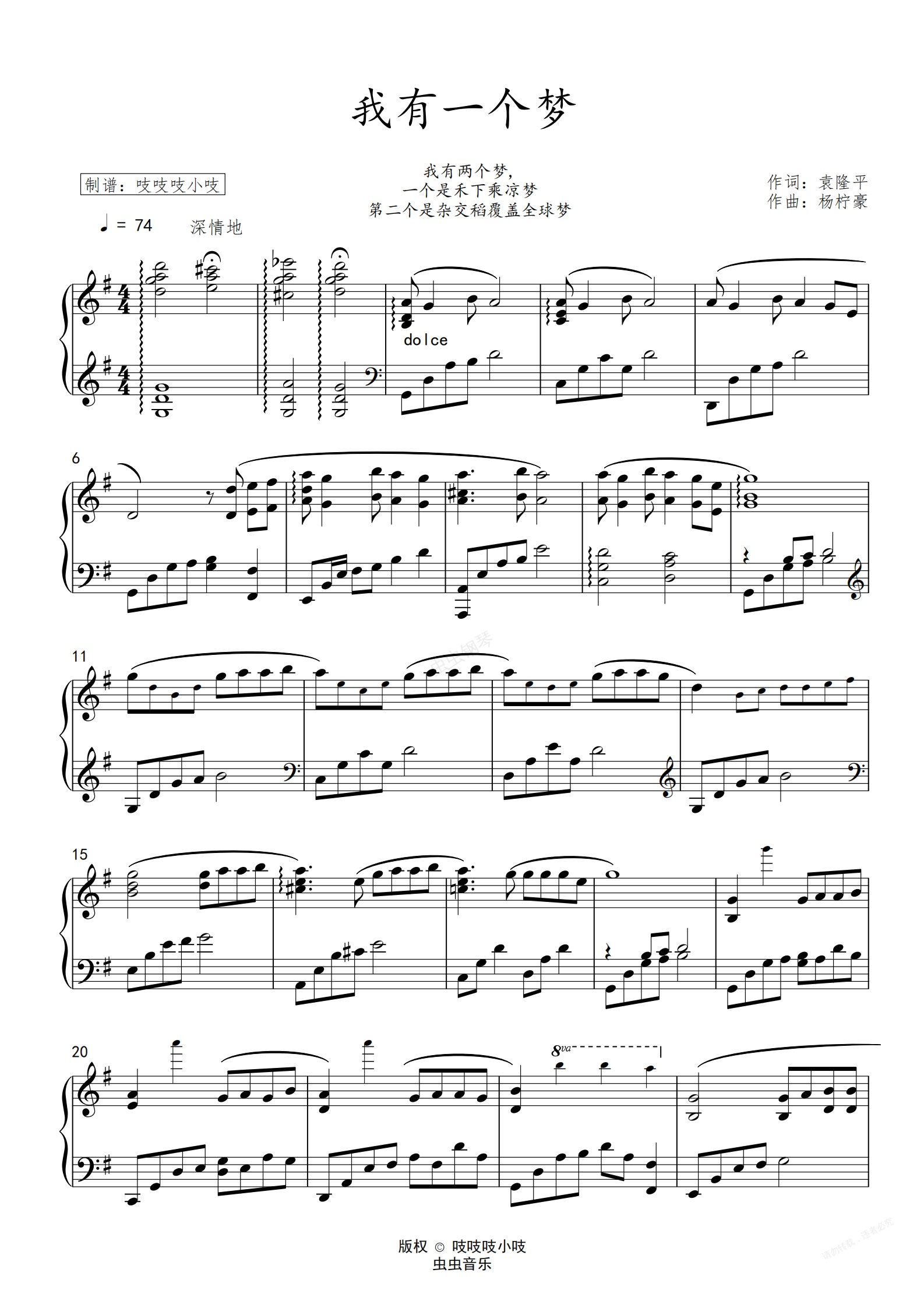 钢琴谱:我有一个梦 袁隆平作词