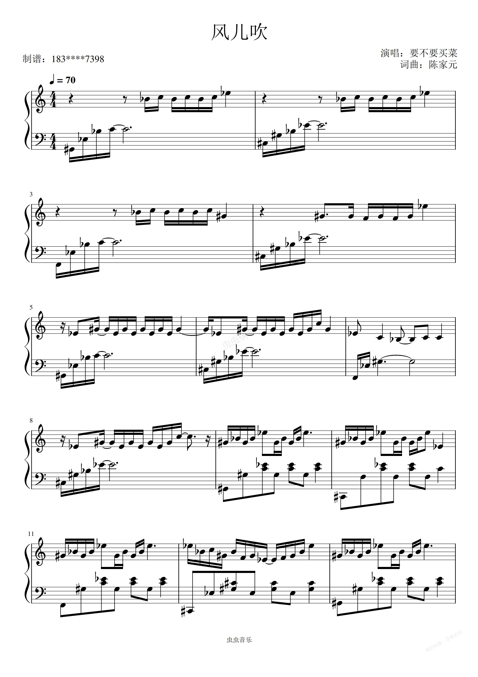 钢琴谱:极限原版-《风儿吹》-#G调--啊信改编