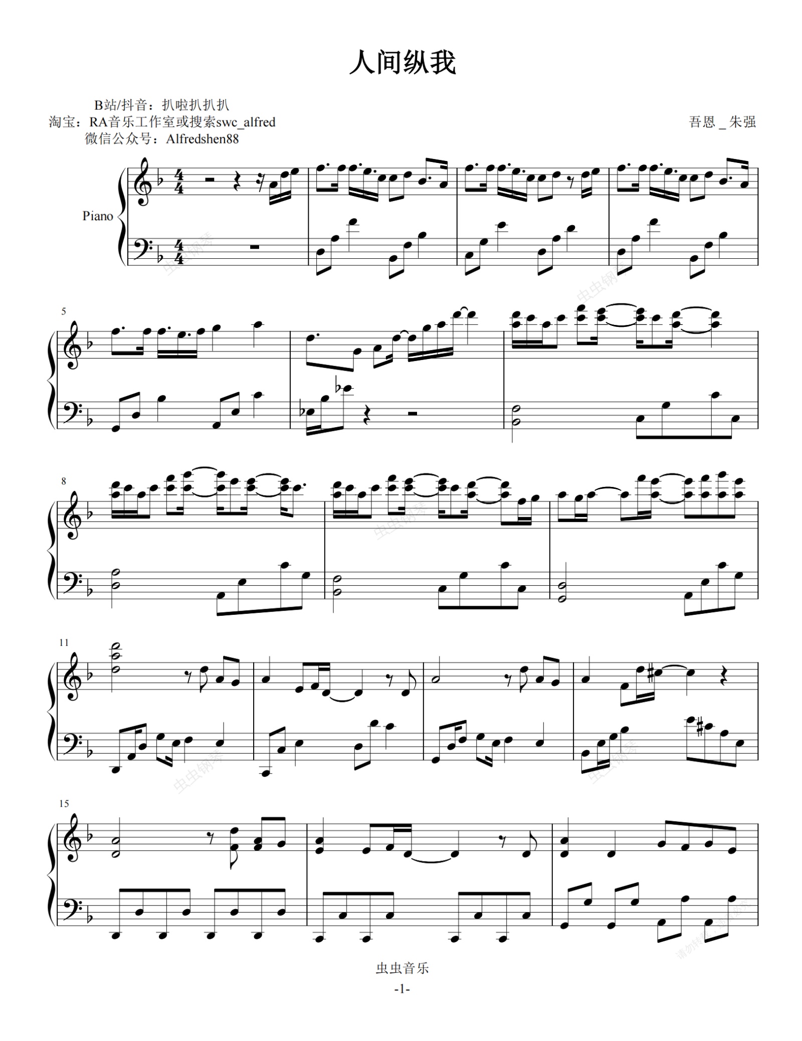钢琴谱:人间纵我-吾恩 简易版