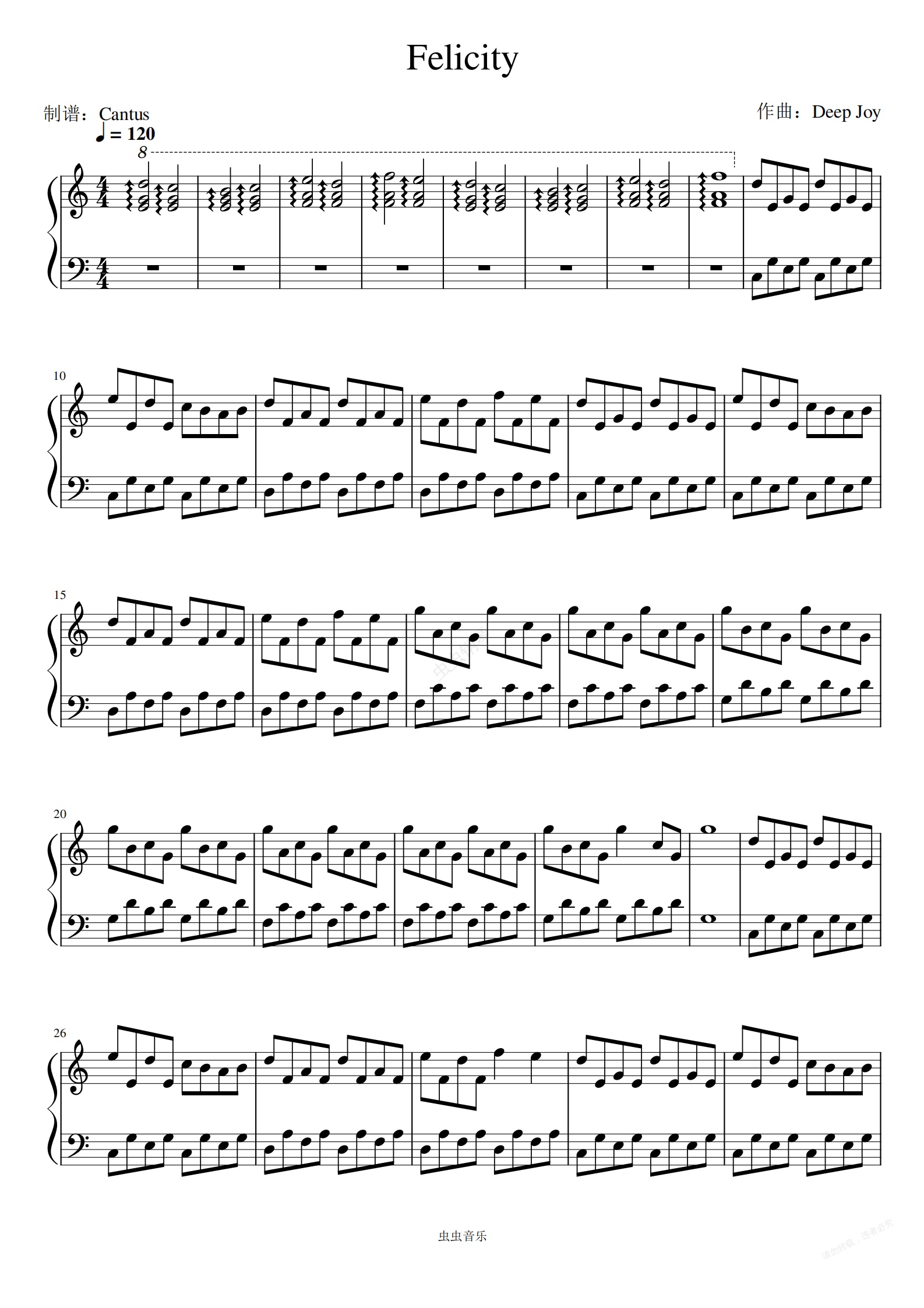 钢琴谱:Felicity/幸福-Isaac Shepard