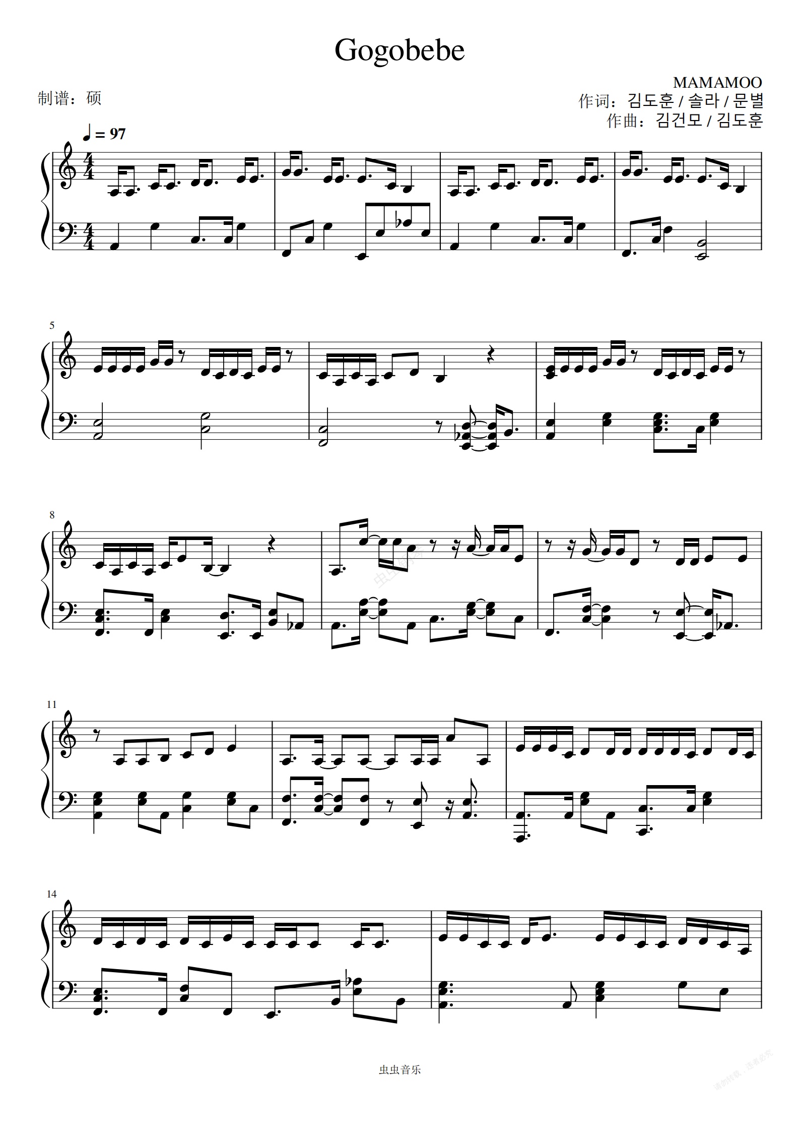 钢琴谱:《Gogobebe》