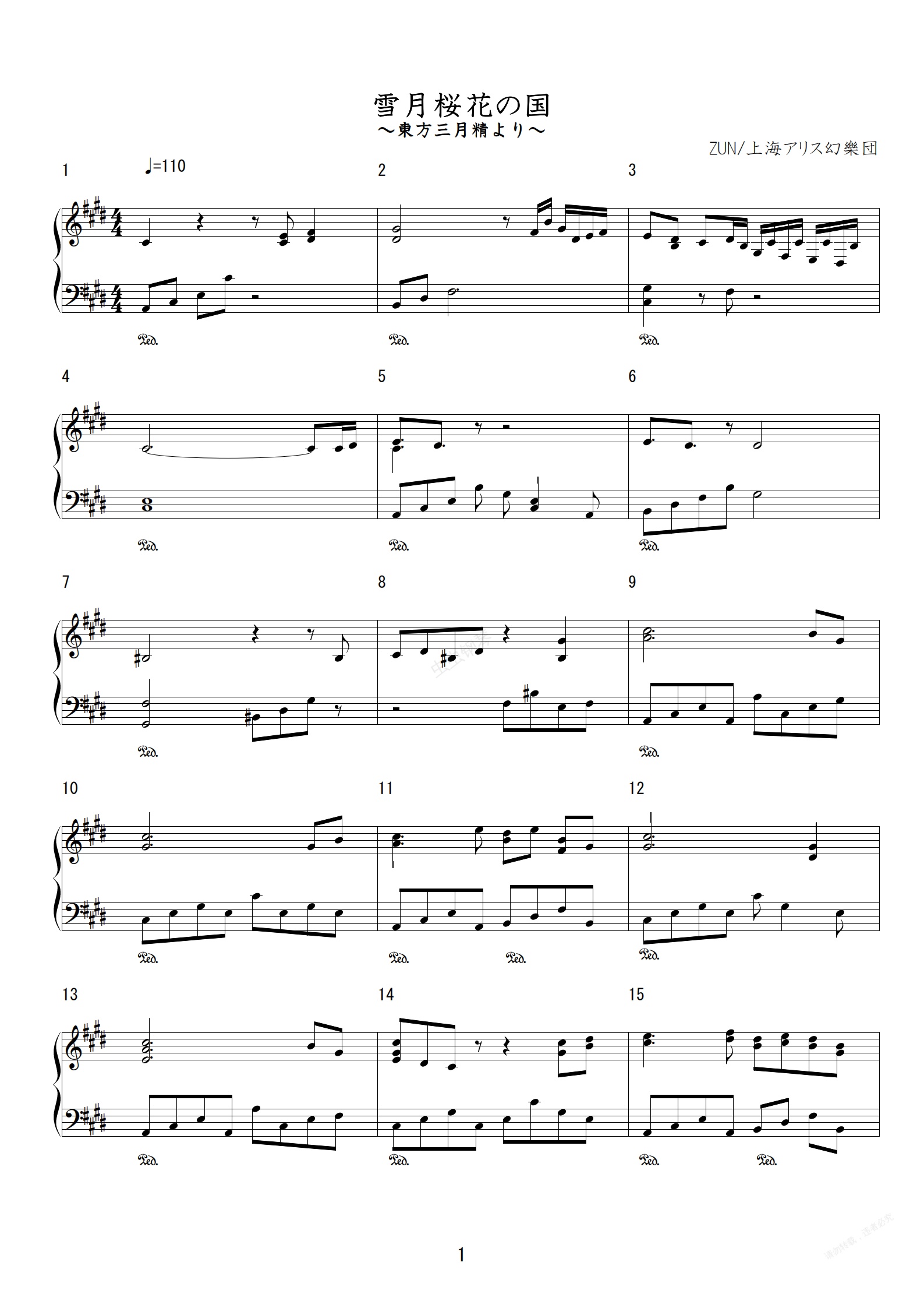 钢琴谱:「Assaultdoor」雪月桜花の国