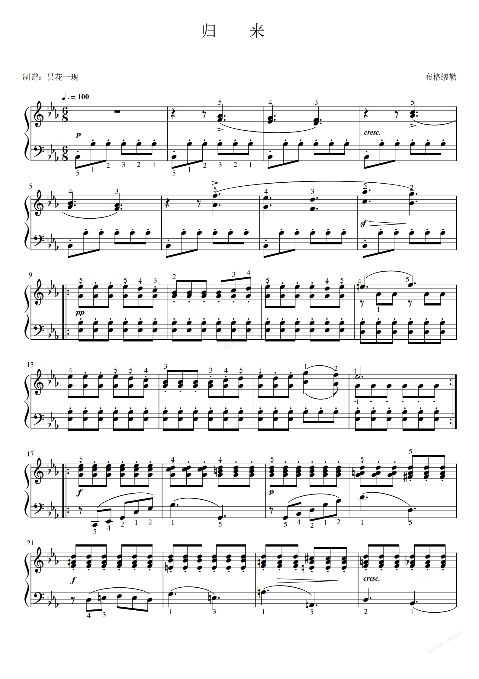 钢琴谱:23.归来《25首钢琴进阶练习曲》