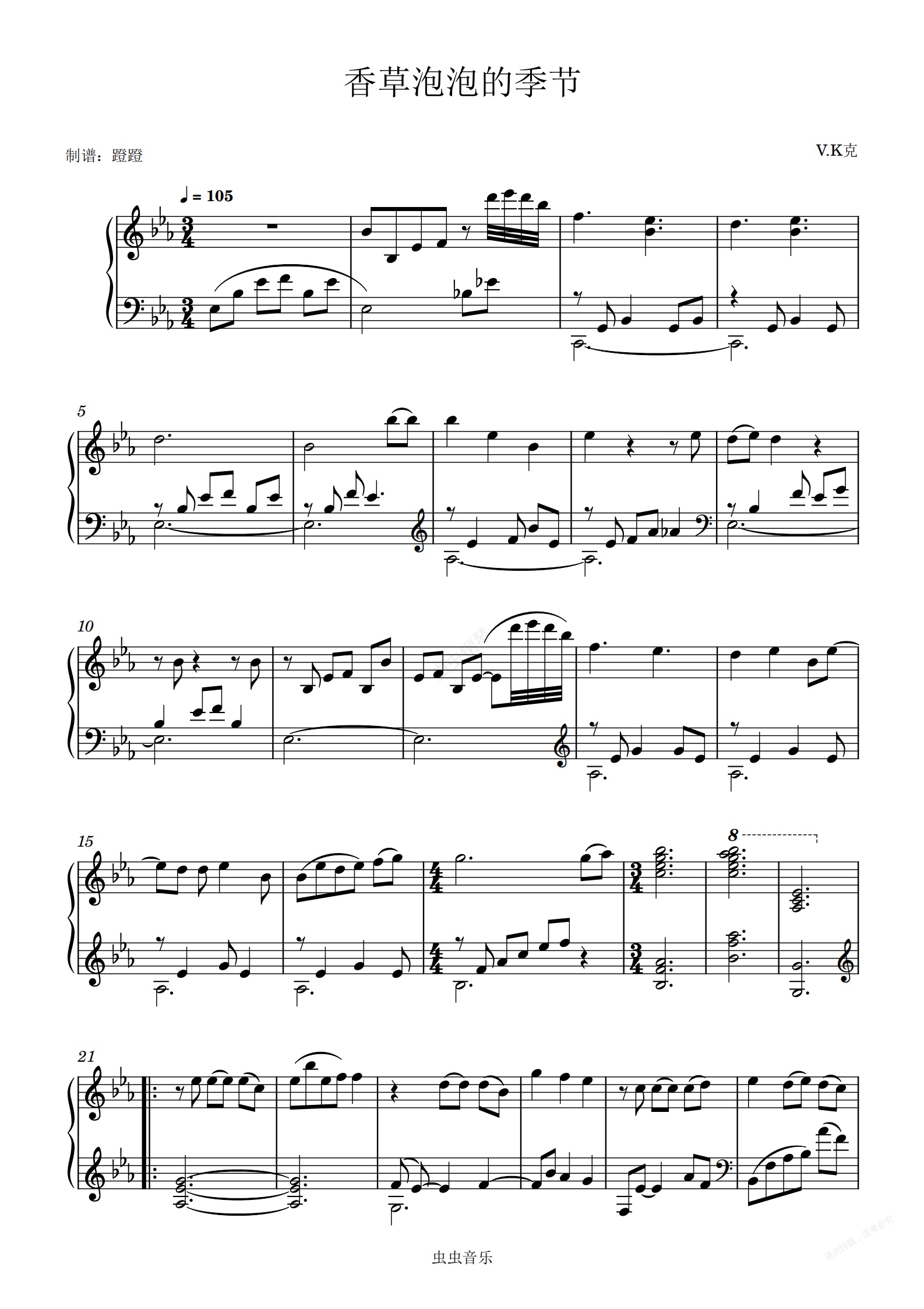 钢琴谱:香草泡泡的季节
