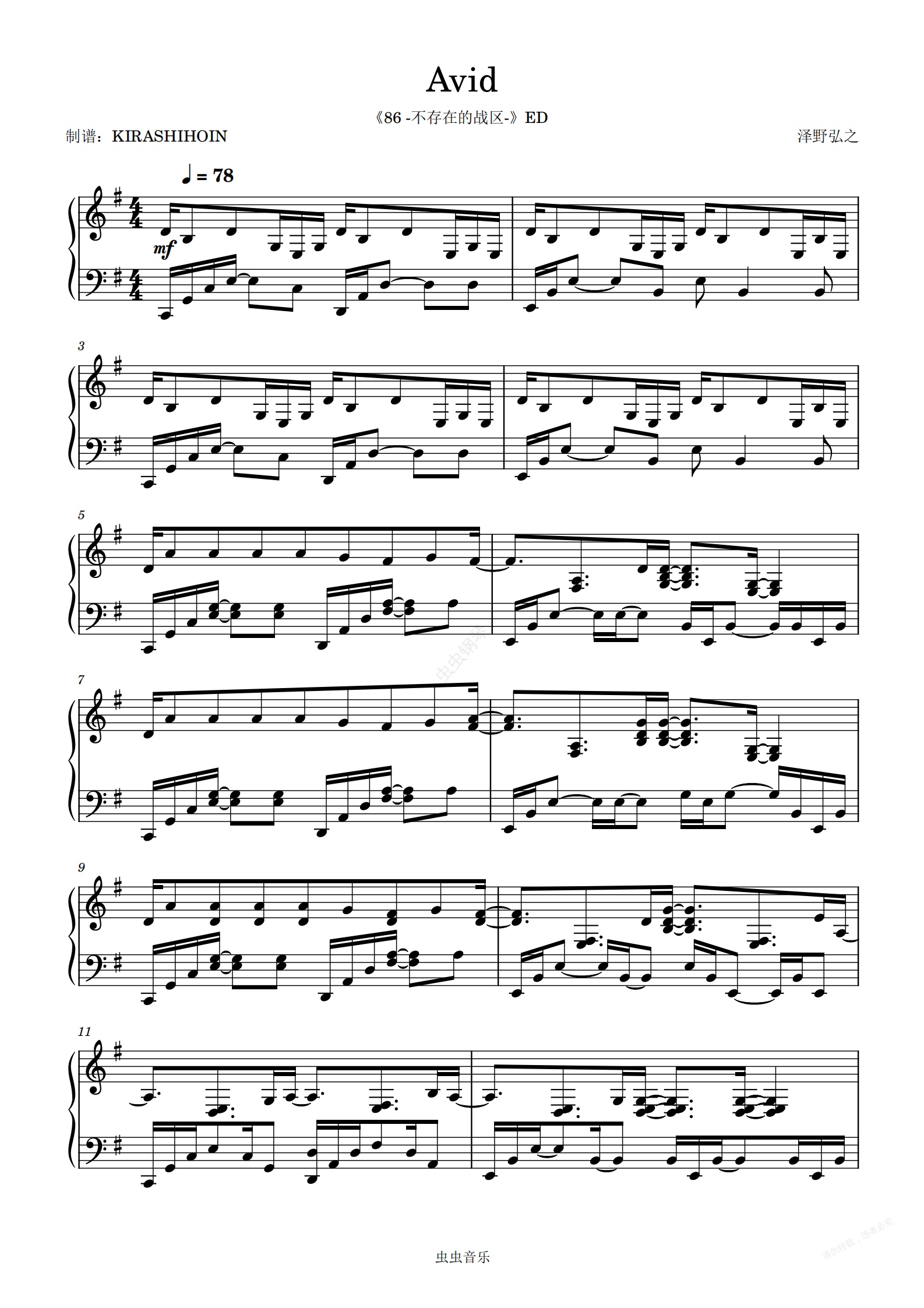 钢琴谱:Avid(《86 -不存在的战区-》ED)- 泽野弘之