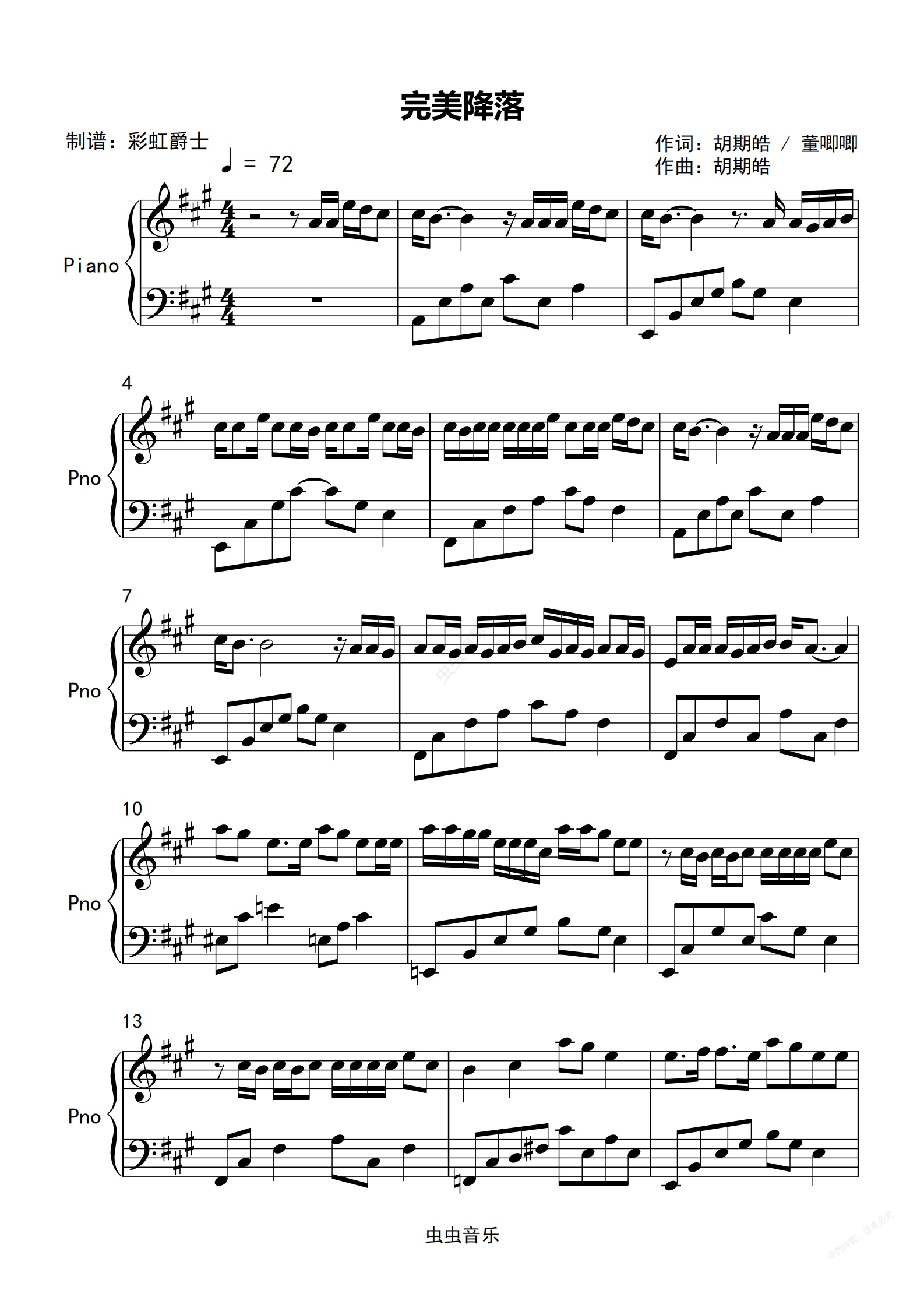 钢琴谱:完美降落-钢琴-抖音 简单版