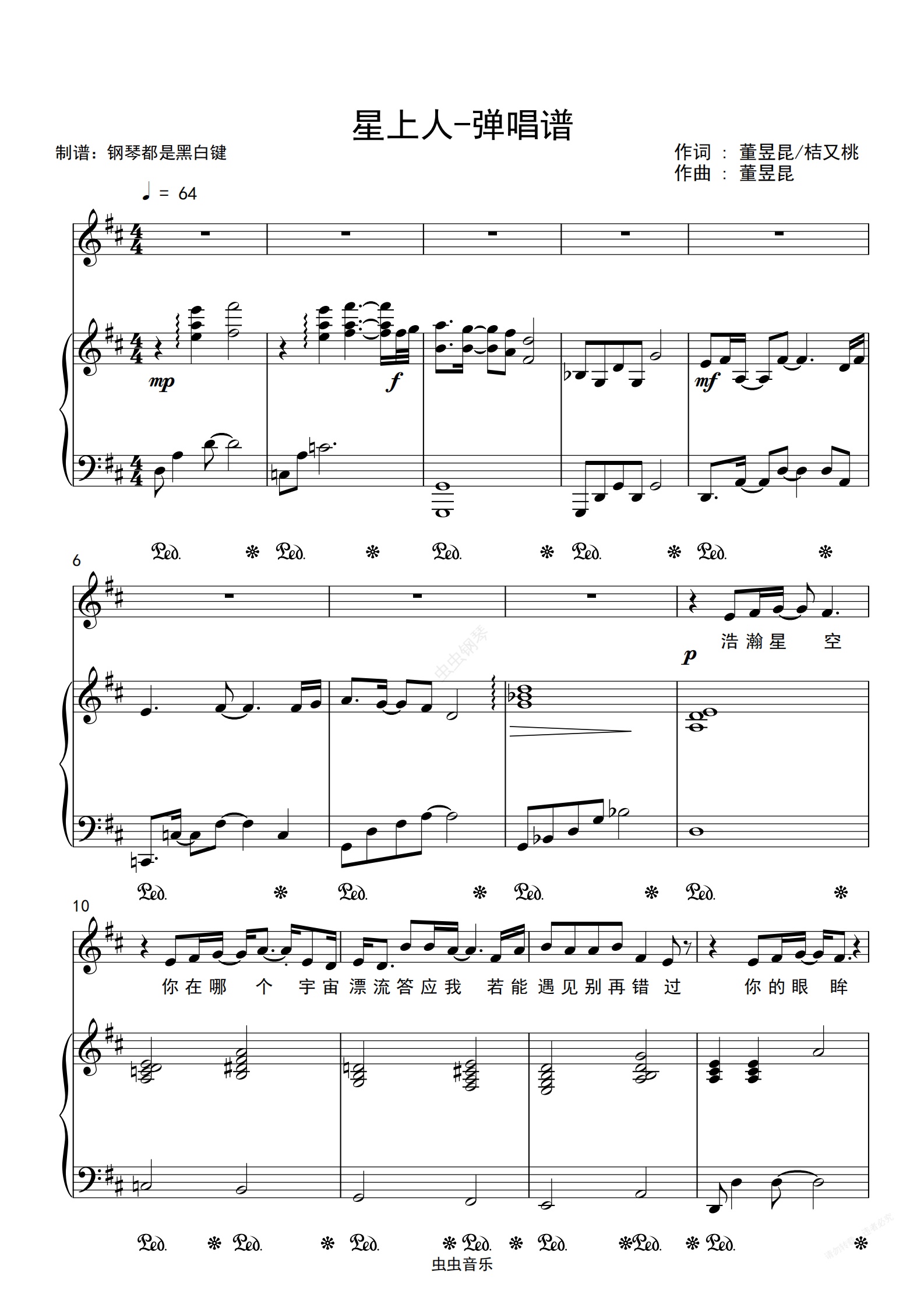 钢琴谱:如此可爱的我们插曲-星上人-弹唱版 附歌词