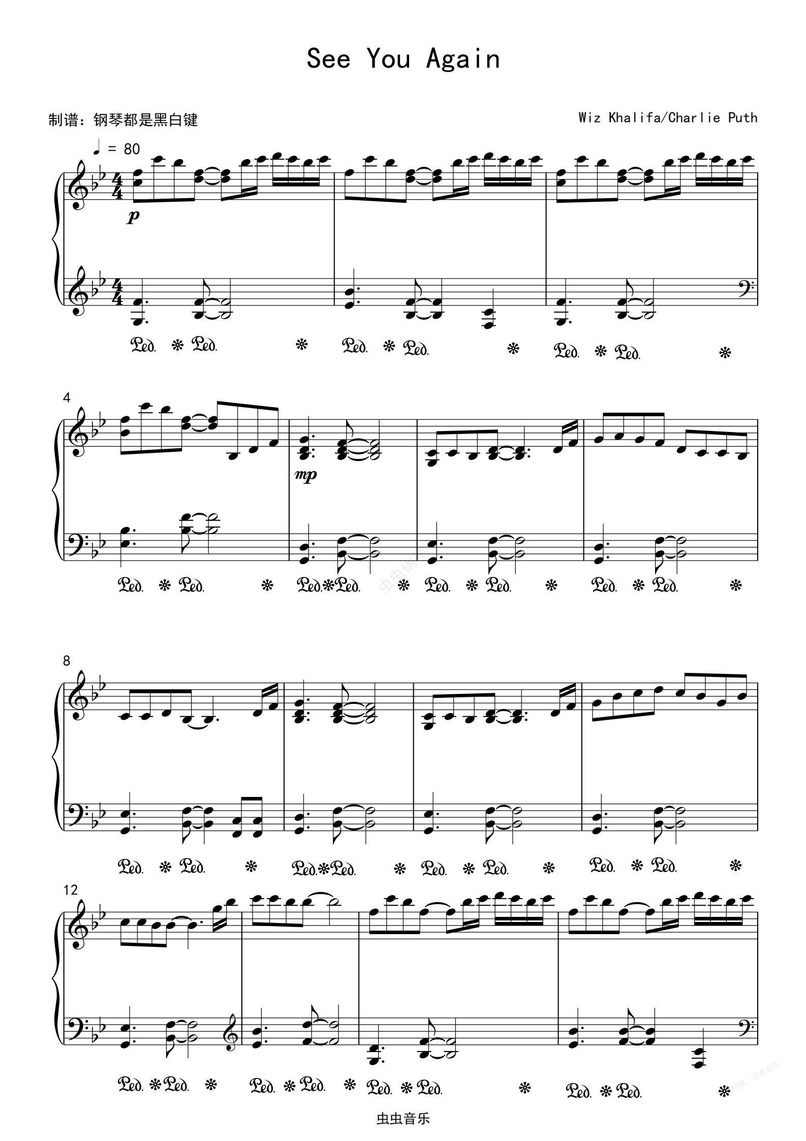 钢琴谱:速度与激情主题曲-See You Again 超好听唯美版