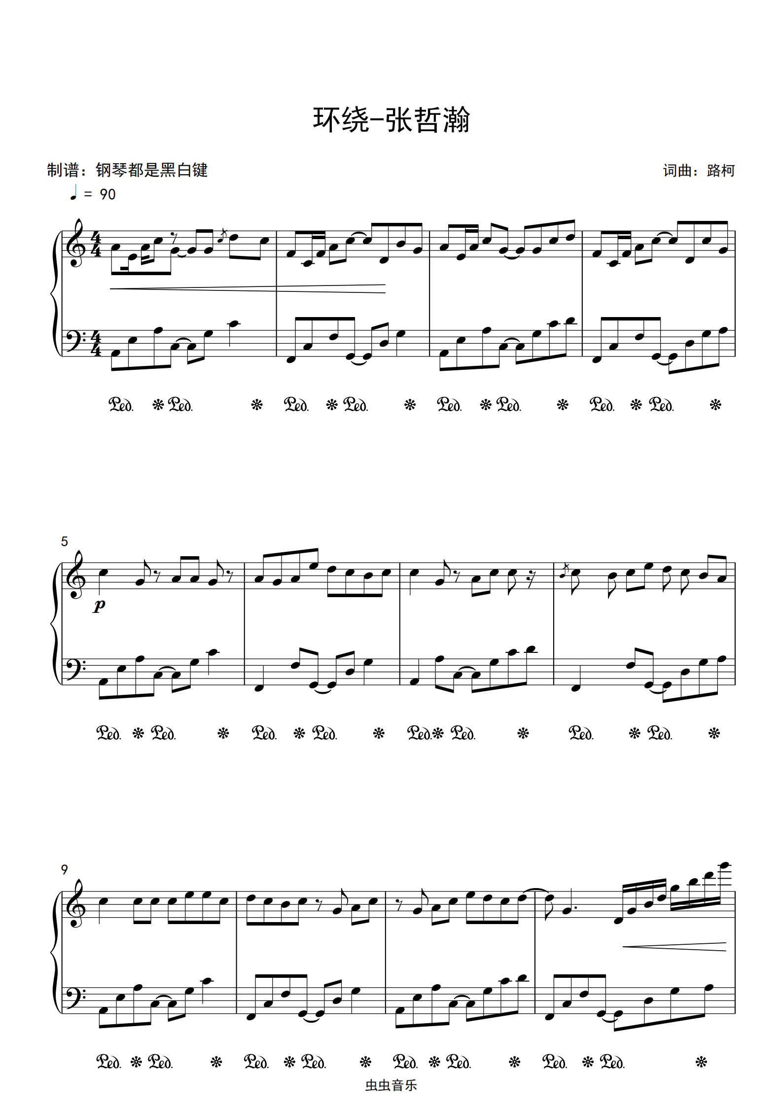 钢琴谱:环绕 -张哲瀚 超高还原唯美版