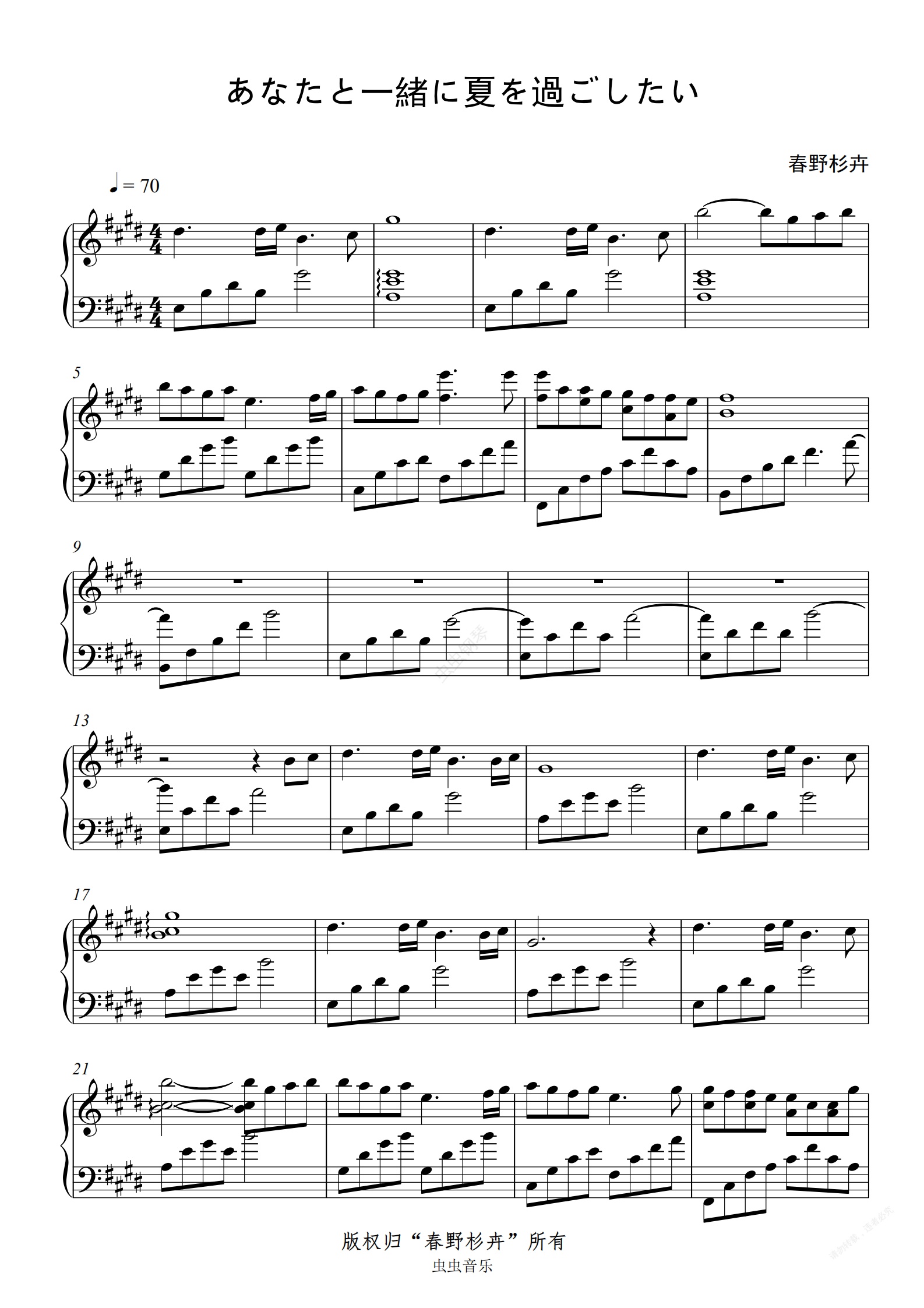 钢琴谱:あなたと一緒に夏を過ごしたい
