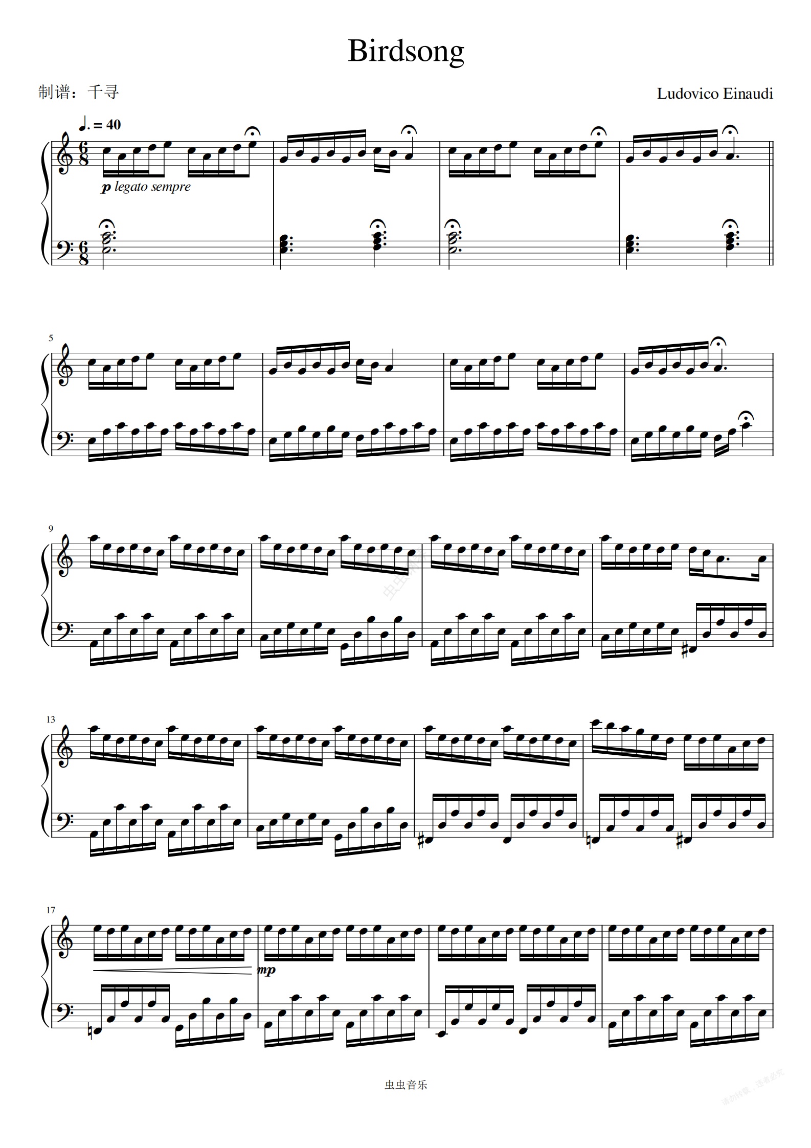 钢琴谱:Ludovico Einaudi-《Birdsong》