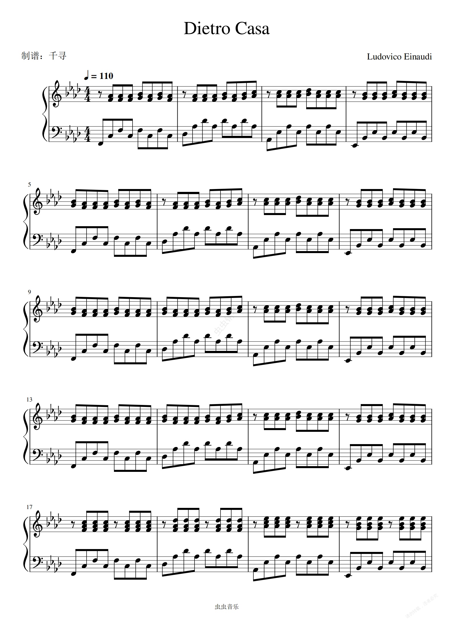 钢琴谱:Ludovico Einaudi-《Dietro Casa》