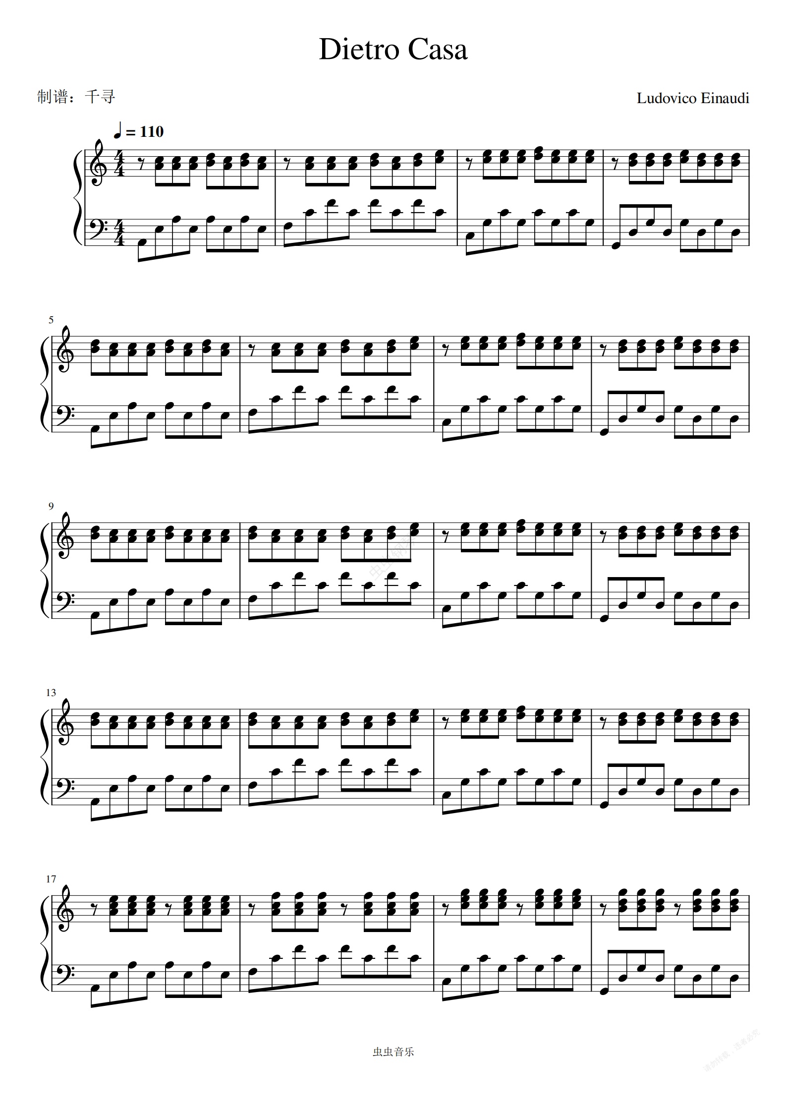 钢琴谱:Ludovico Einaudi《Dietro Casa》