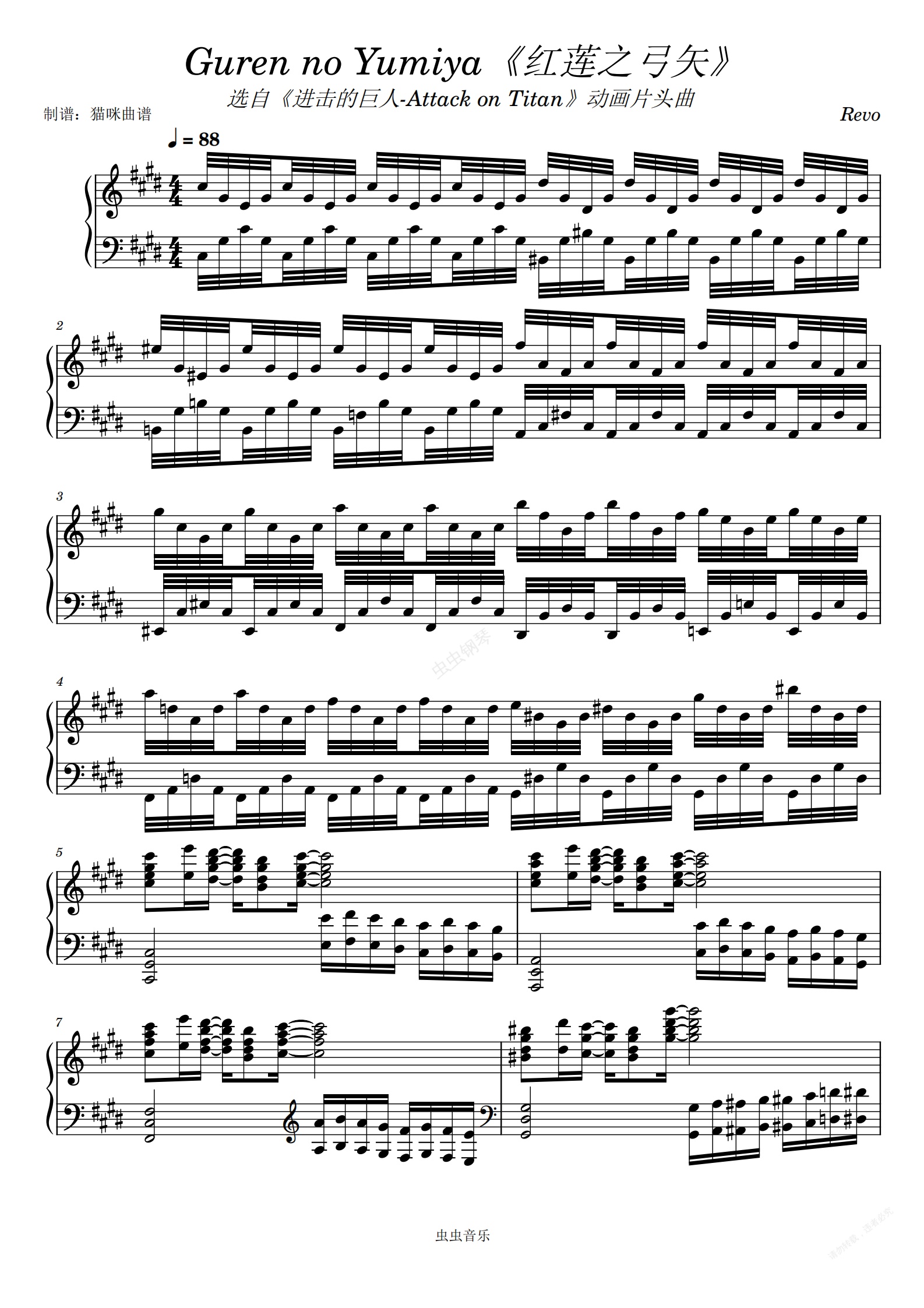 钢琴谱:《红莲之弓矢》Guren no Yumiya