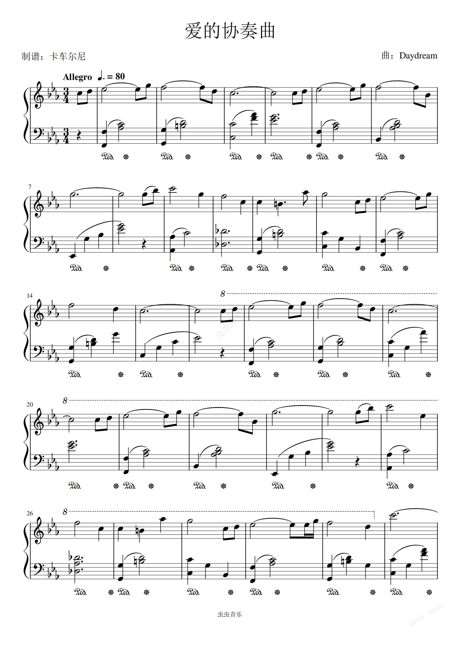 钢琴谱:优美动听的《爱的协奏曲》白日梦Daydream 完美还原版