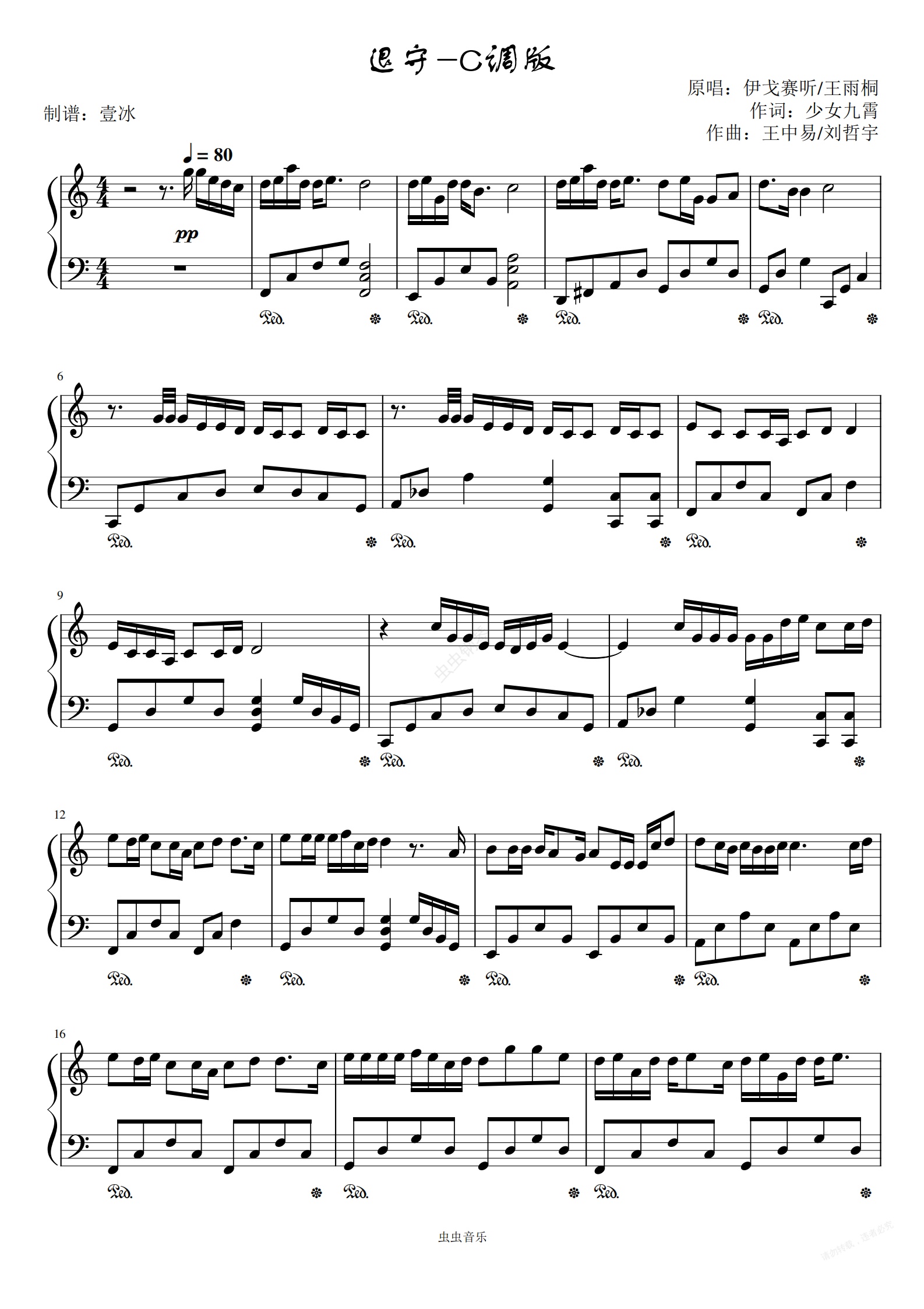 钢琴谱:退守//伊戈赛听/王雨桐-C调简单易上手