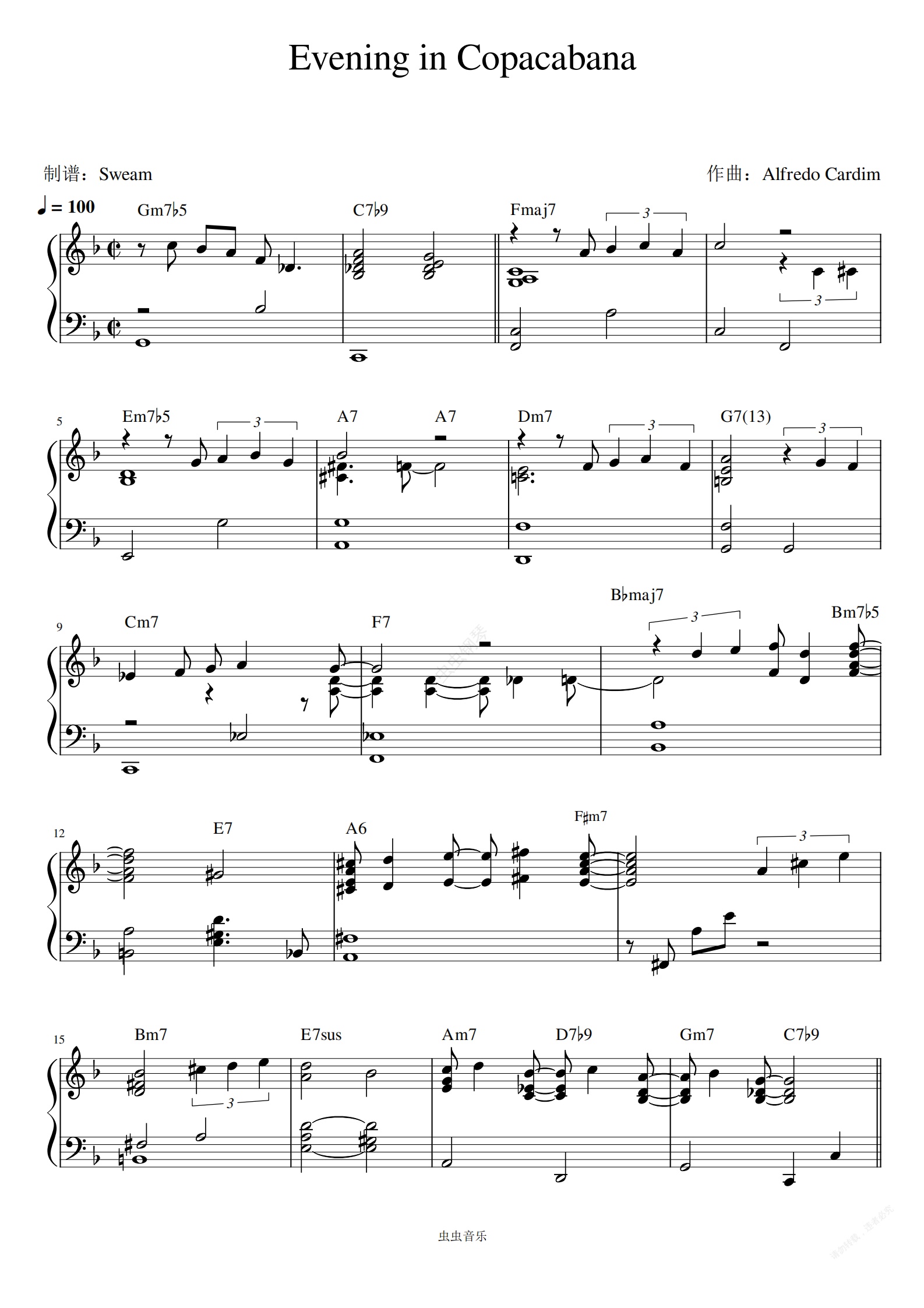 钢琴谱:Evening in Copacabana(巴西风小清新爵士)