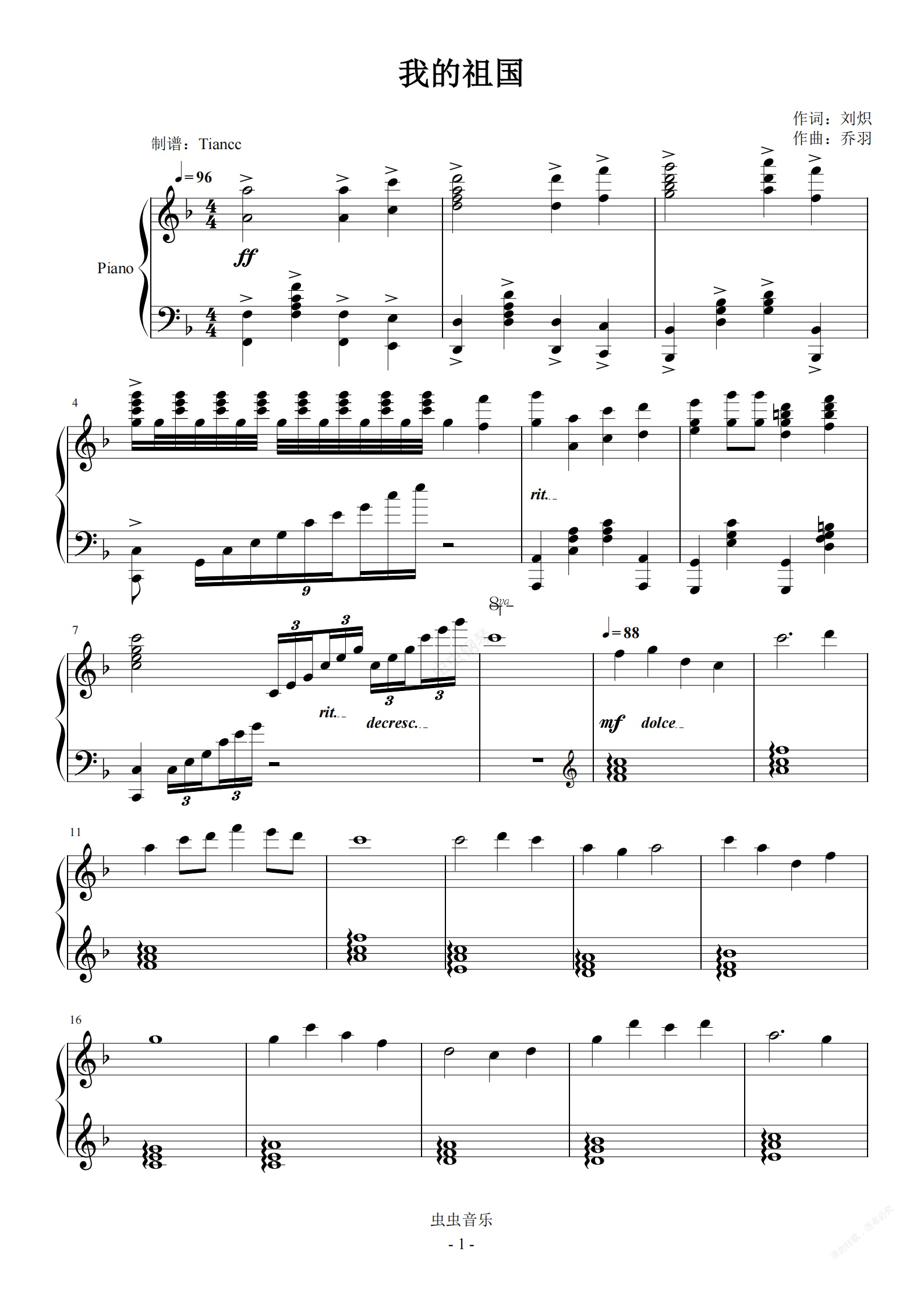 钢琴谱:《我的祖国》大气恢宏演奏版,299难度