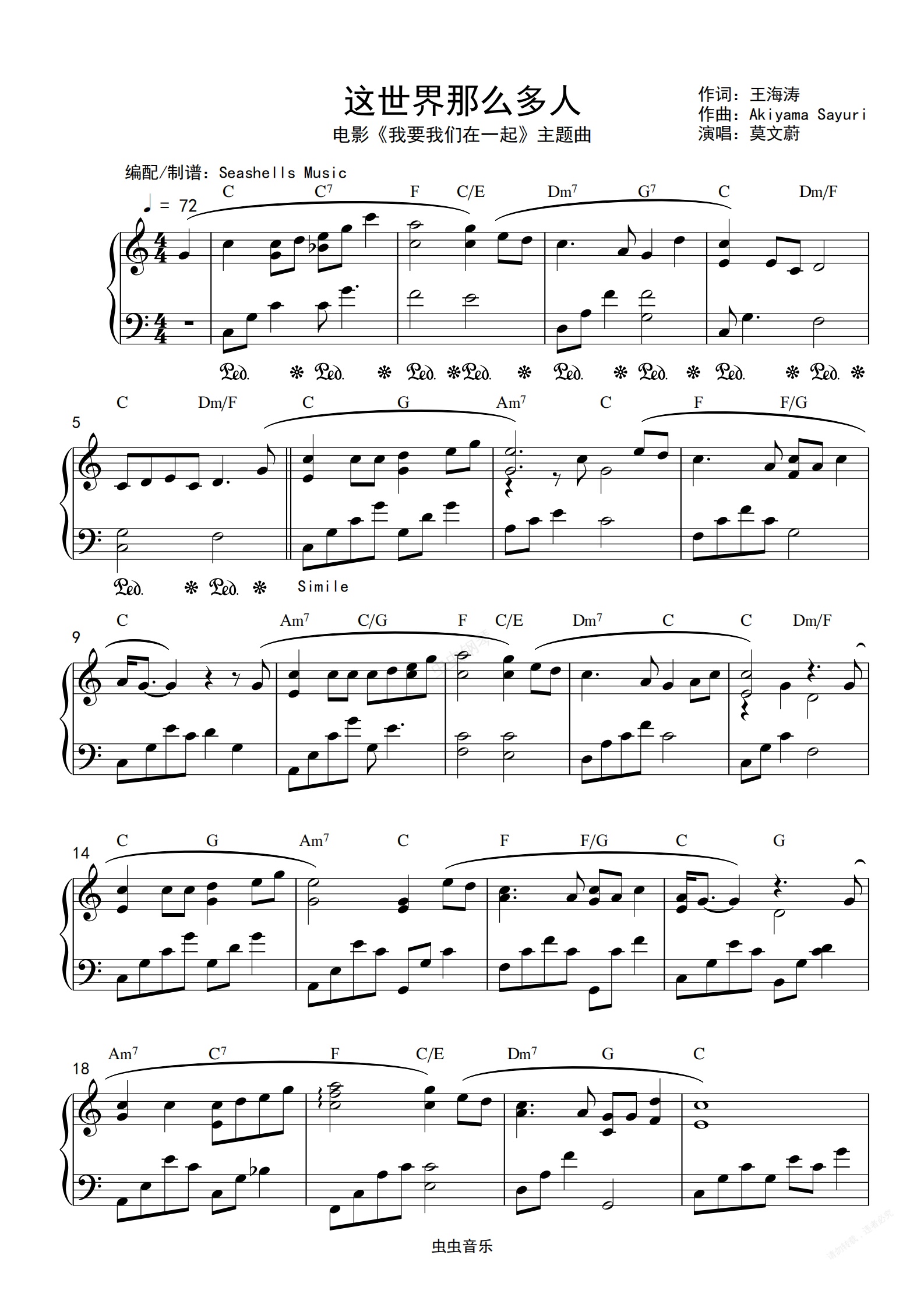 钢琴谱:莫文蔚-《这世界那么多人》精编钢琴独奏