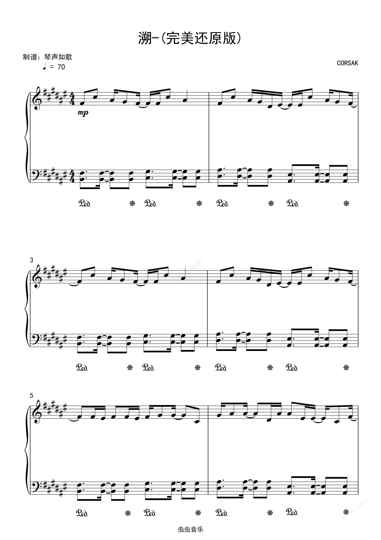 钢琴谱:溯-马吟吟 极限还原钢琴独奏