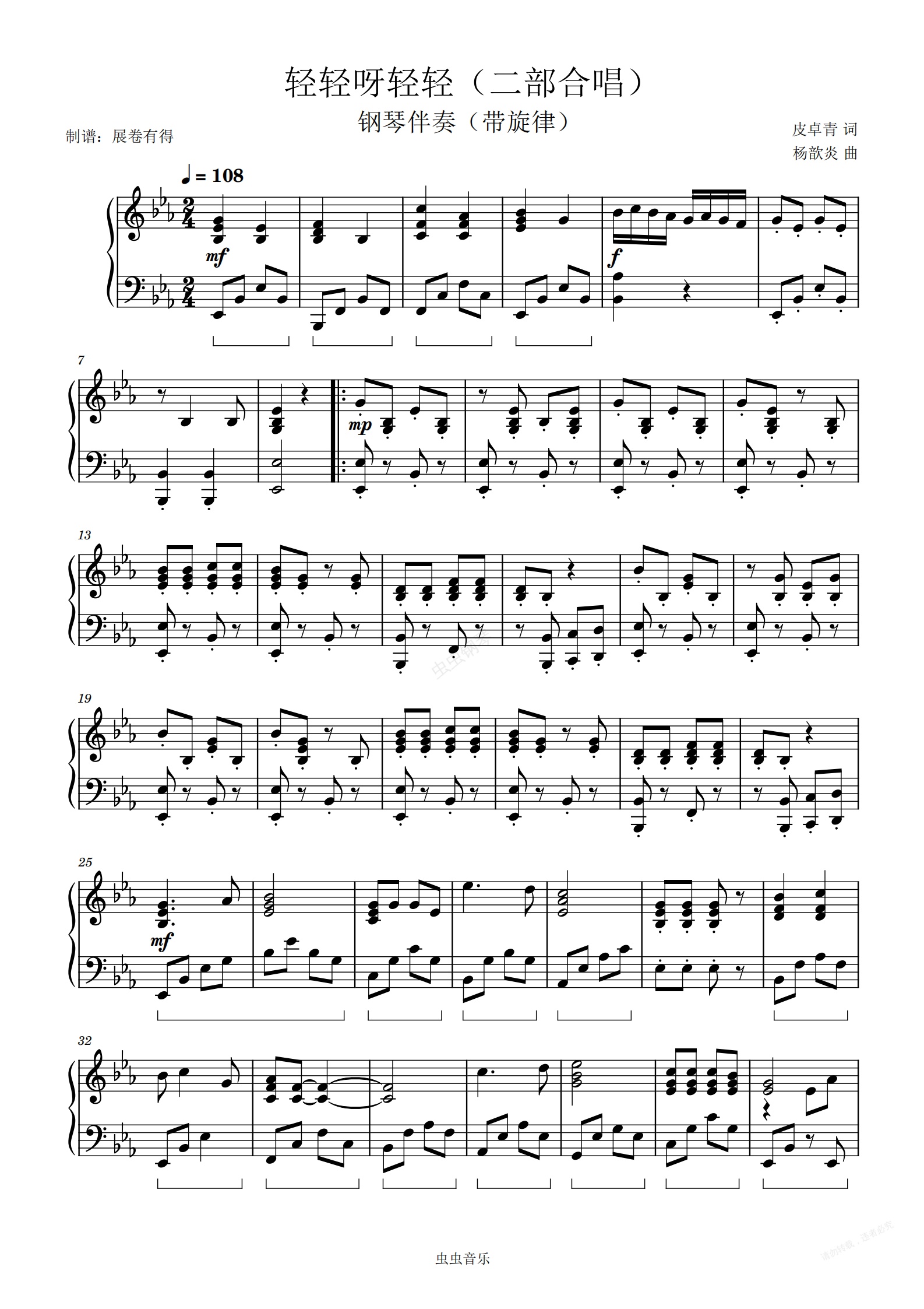 钢琴谱:轻轻呀轻轻(钢琴伴奏)