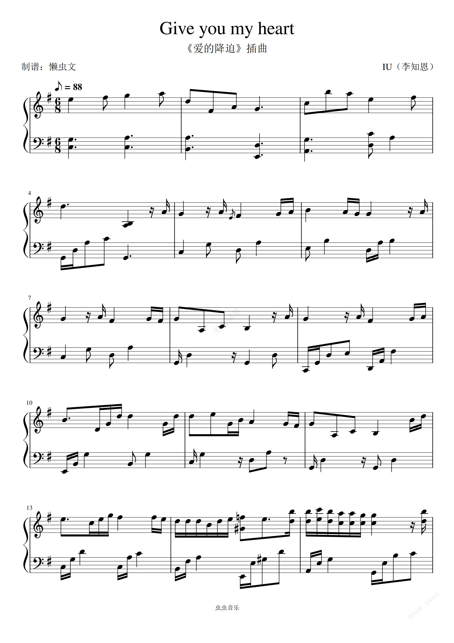 钢琴谱:《爱的降迫》-Give you my heart