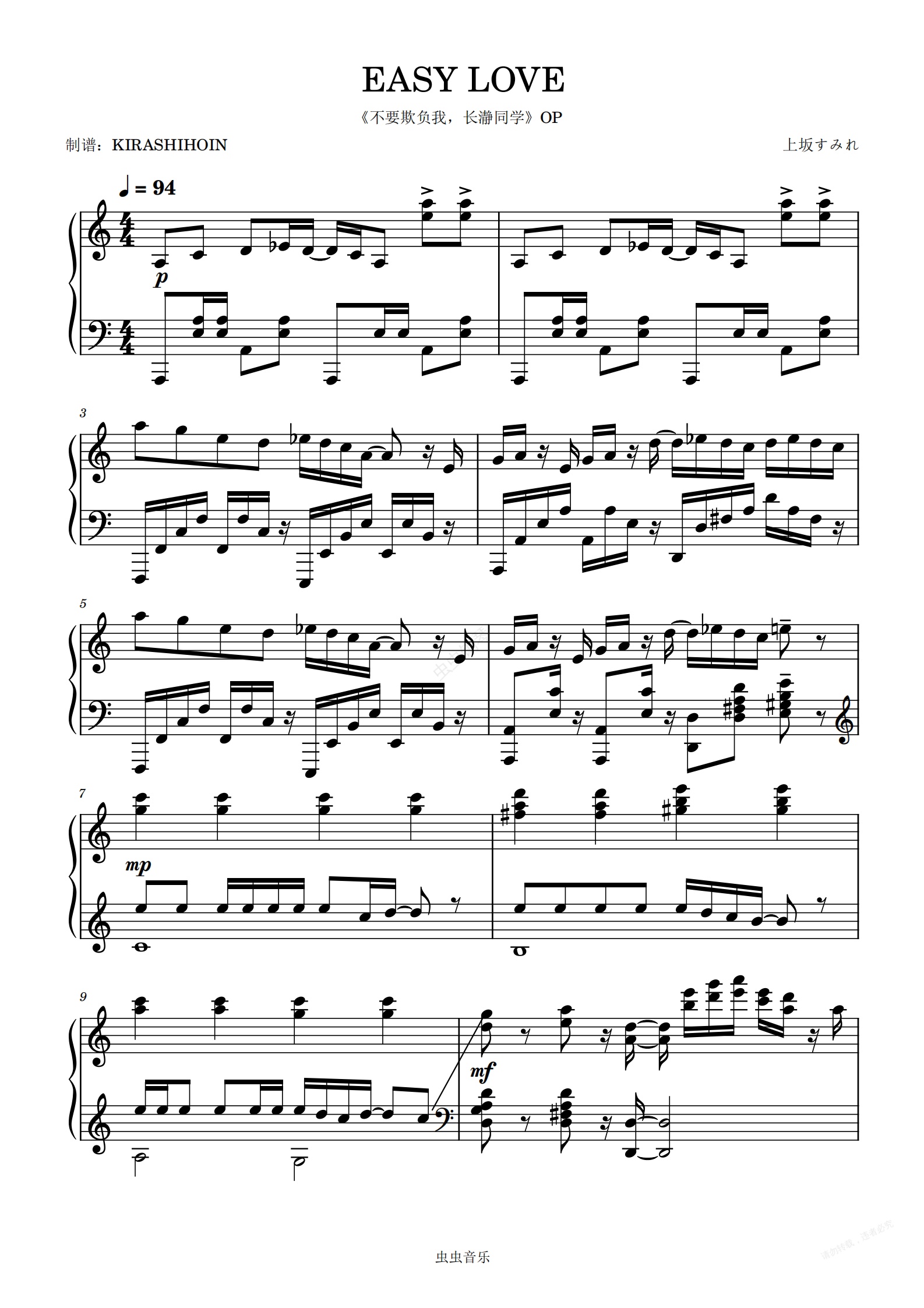 钢琴谱:EASY LOVE(《不要欺负我,长瀞同学》OP)- 上坂堇