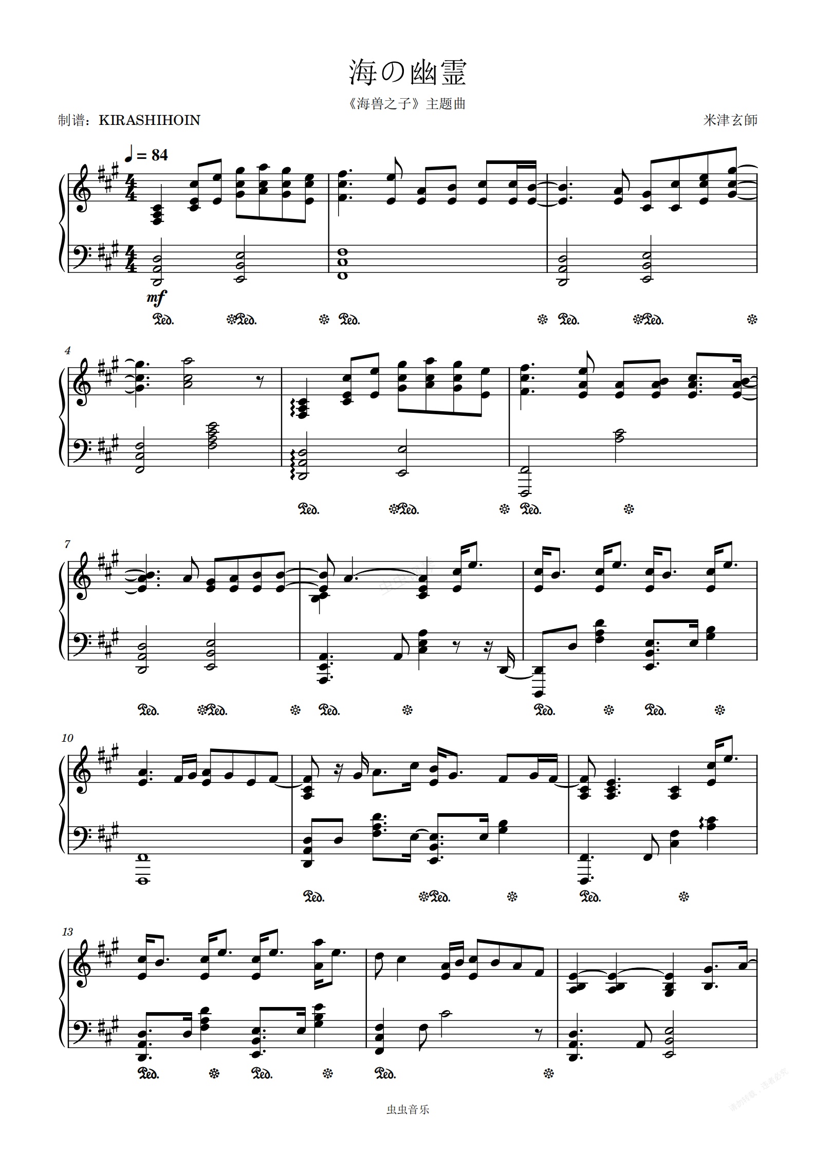 钢琴谱:海の幽霊/海之幽灵(《海兽之子》主题曲)- 米津玄师