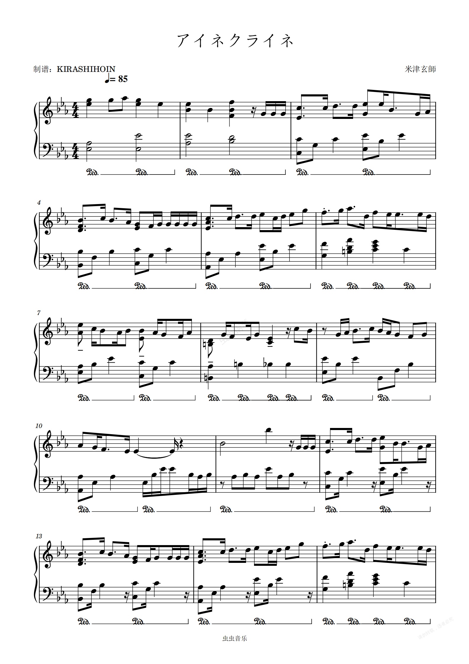钢琴谱:アイネクライネ/Eine Kleine - 米津玄师