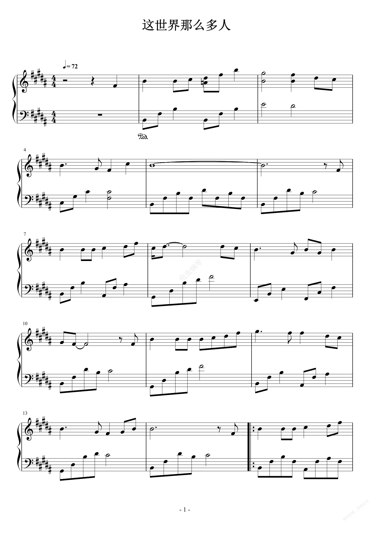 钢琴谱:这世界那么多人莫文蔚 简易版