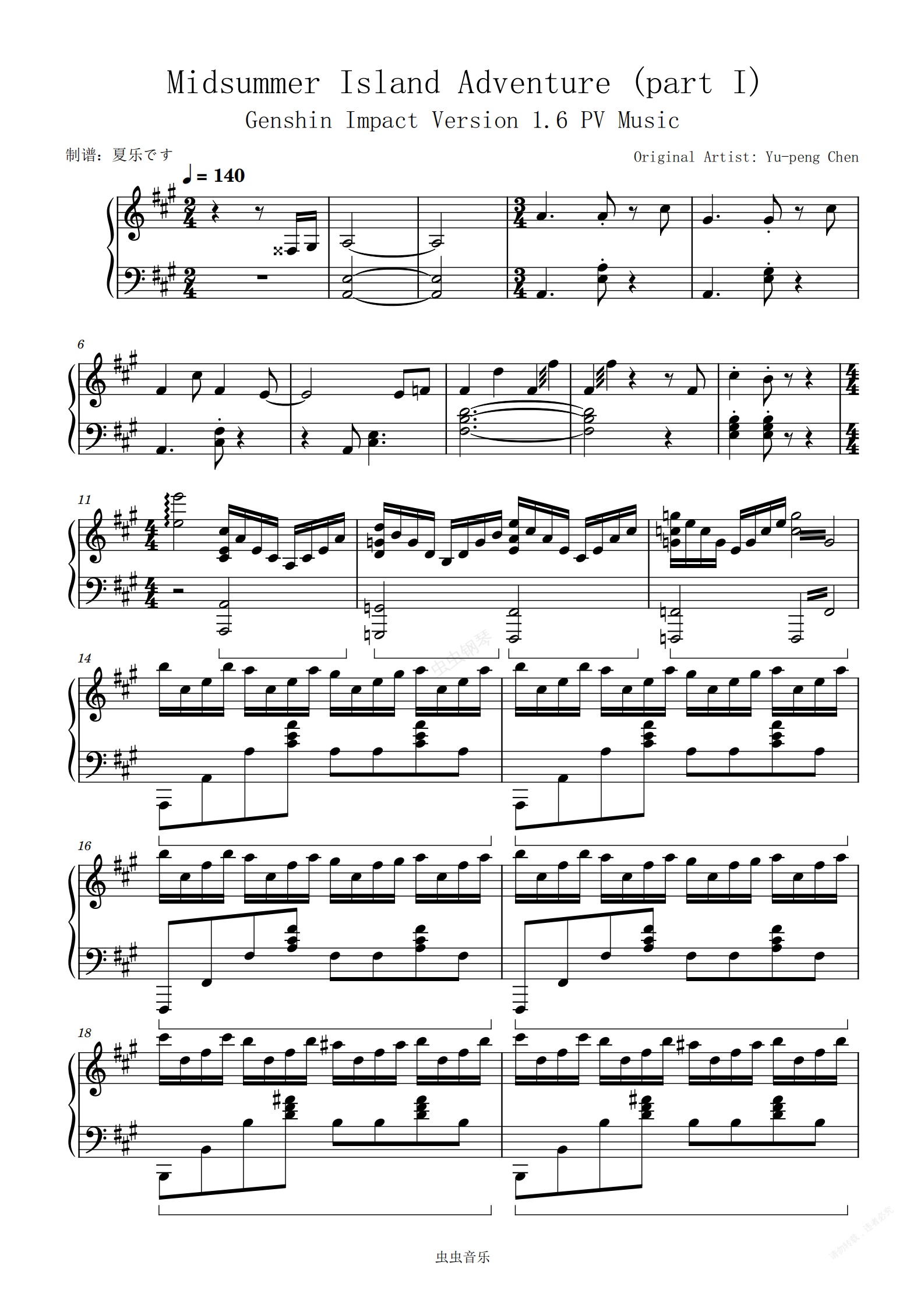 钢琴谱:【原神】夏日海滩的感觉!1.6版本PV 高能钢琴改编