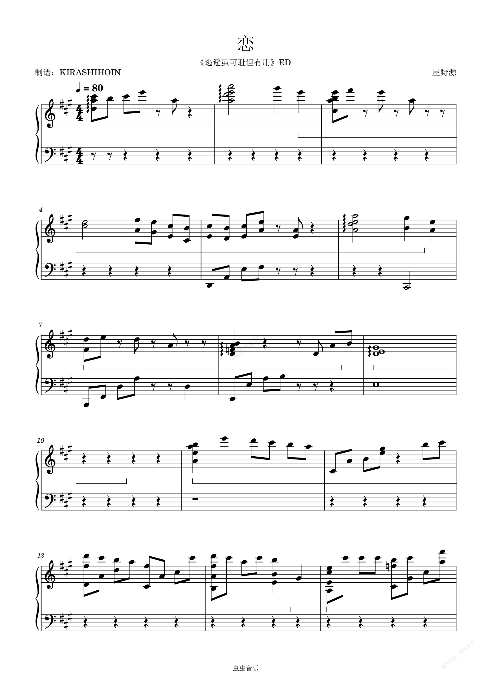 钢琴谱:恋(《逃避虽可耻但有用》ED)- 星野源