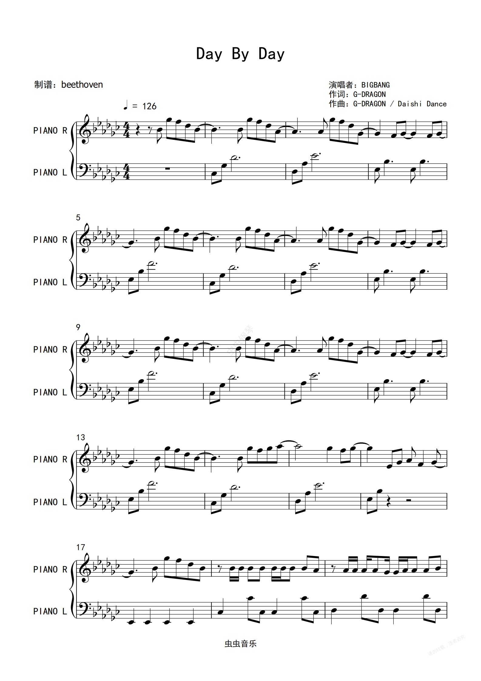 钢琴谱:一天一天BINGBANG(钢琴独奏)