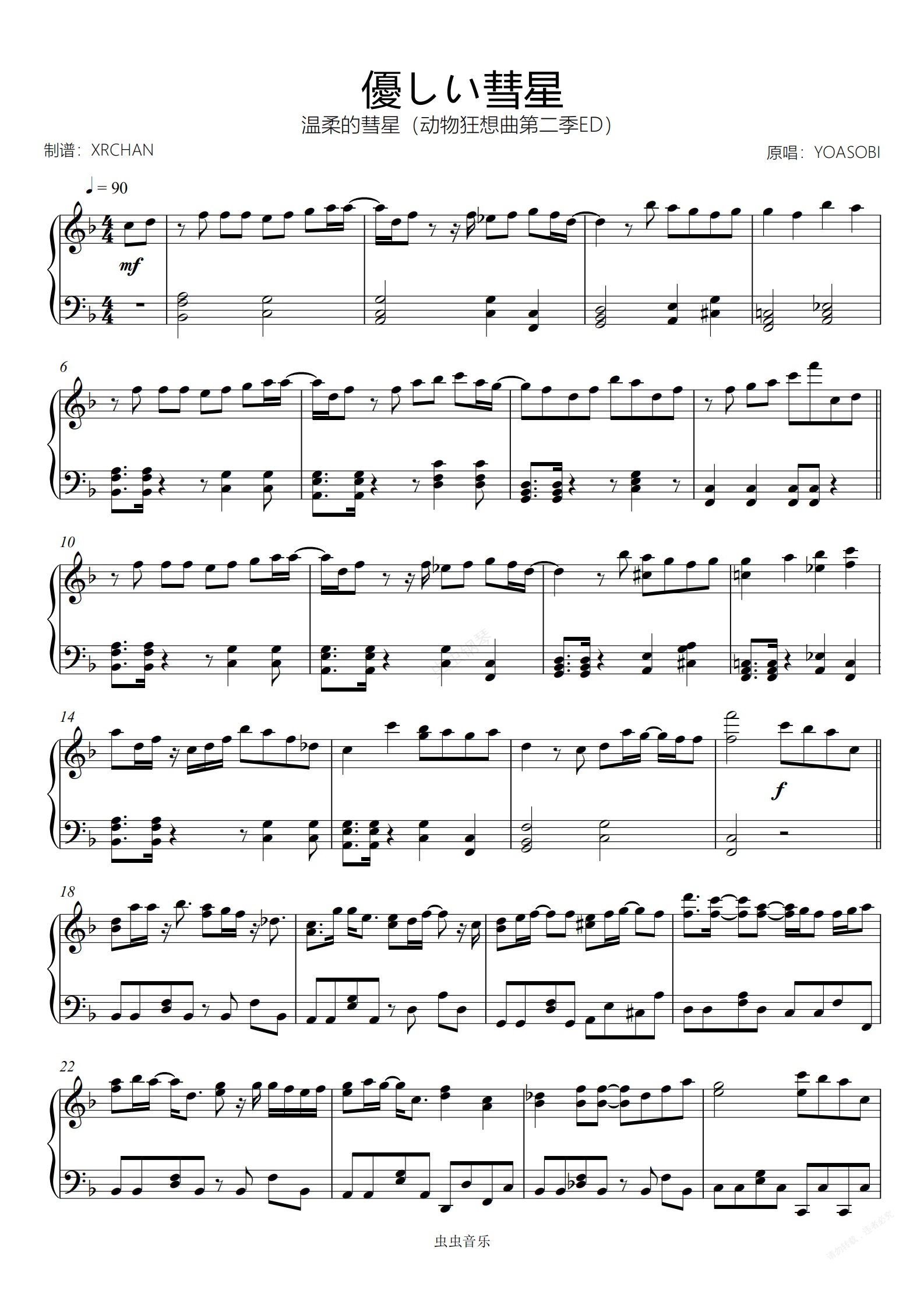 钢琴谱:優しい彗星 初级版 YOASOBI 温柔的彗星(动物狂想曲第二季ED)