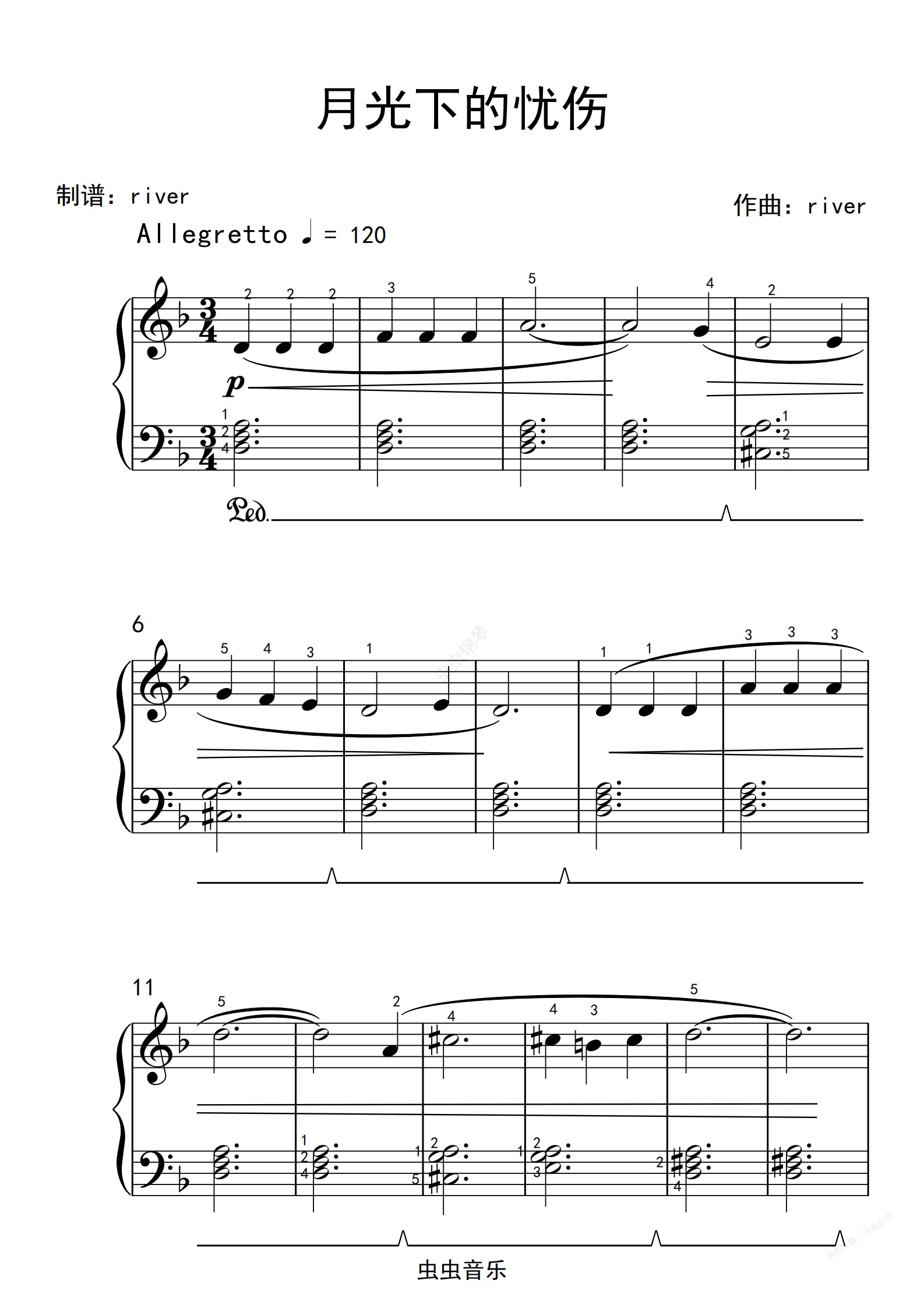 钢琴谱:月光下的忧伤 琴童音乐会可用