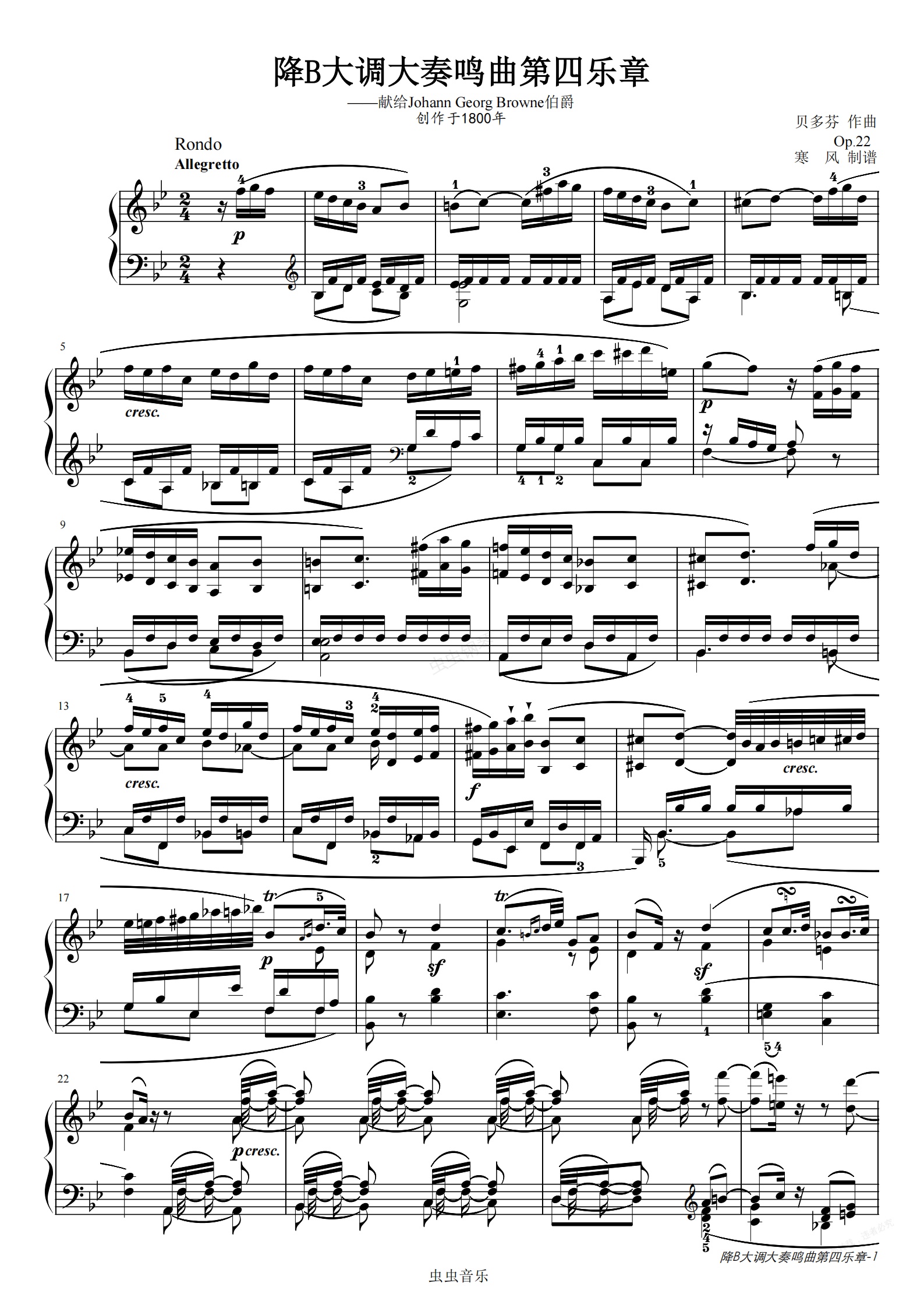 钢琴谱:贝多芬-降B大调第11钢琴奏鸣曲 第四乐章