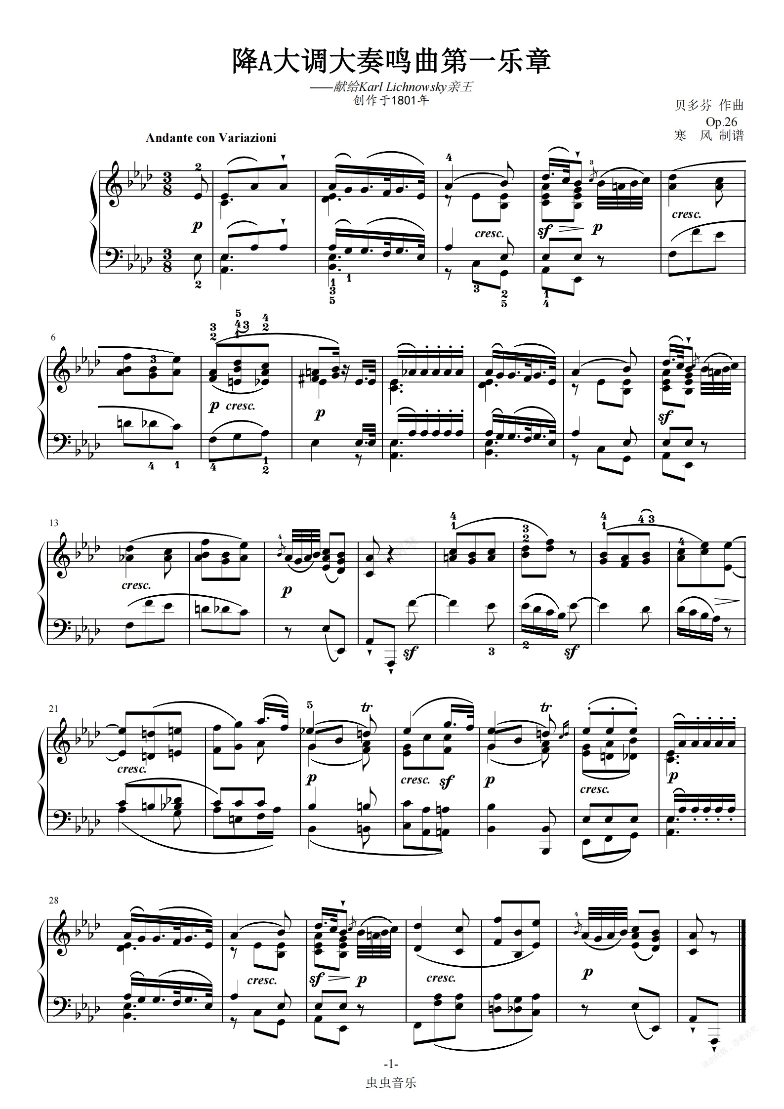 钢琴谱:贝多芬-降A大调第12钢琴奏鸣曲第一乐章