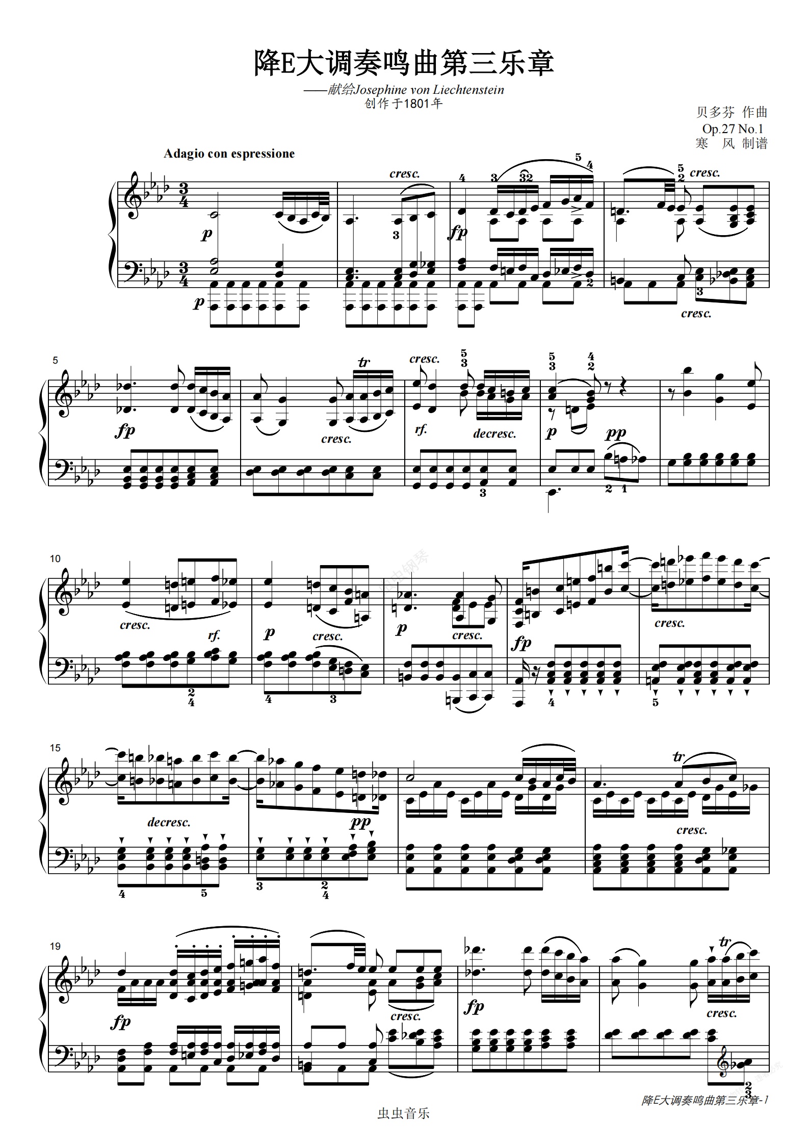 钢琴谱:贝多芬-降E大调第13钢琴奏鸣曲第三乐章