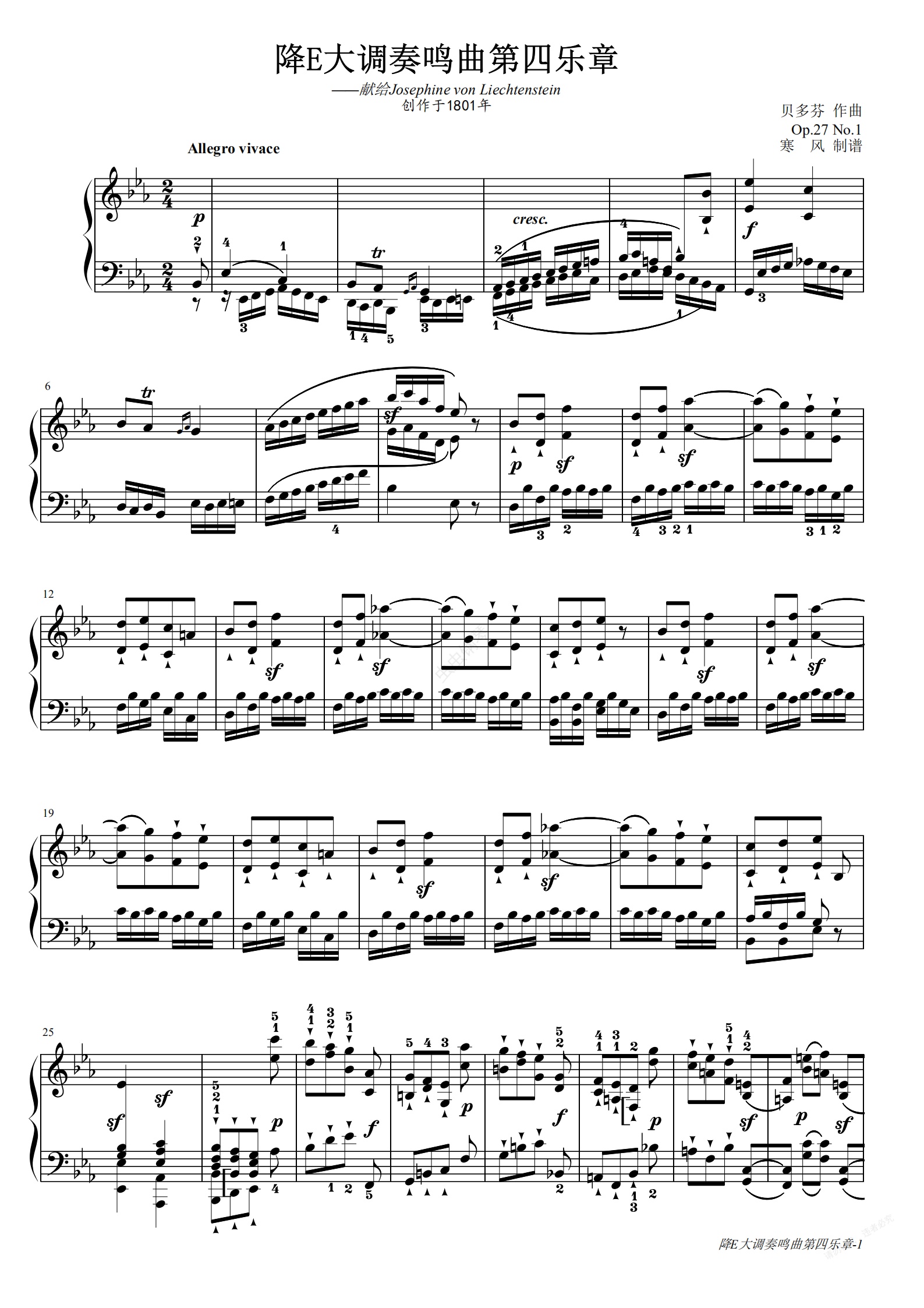 钢琴谱:贝多芬-降E大调第13钢琴奏鸣曲第四乐章