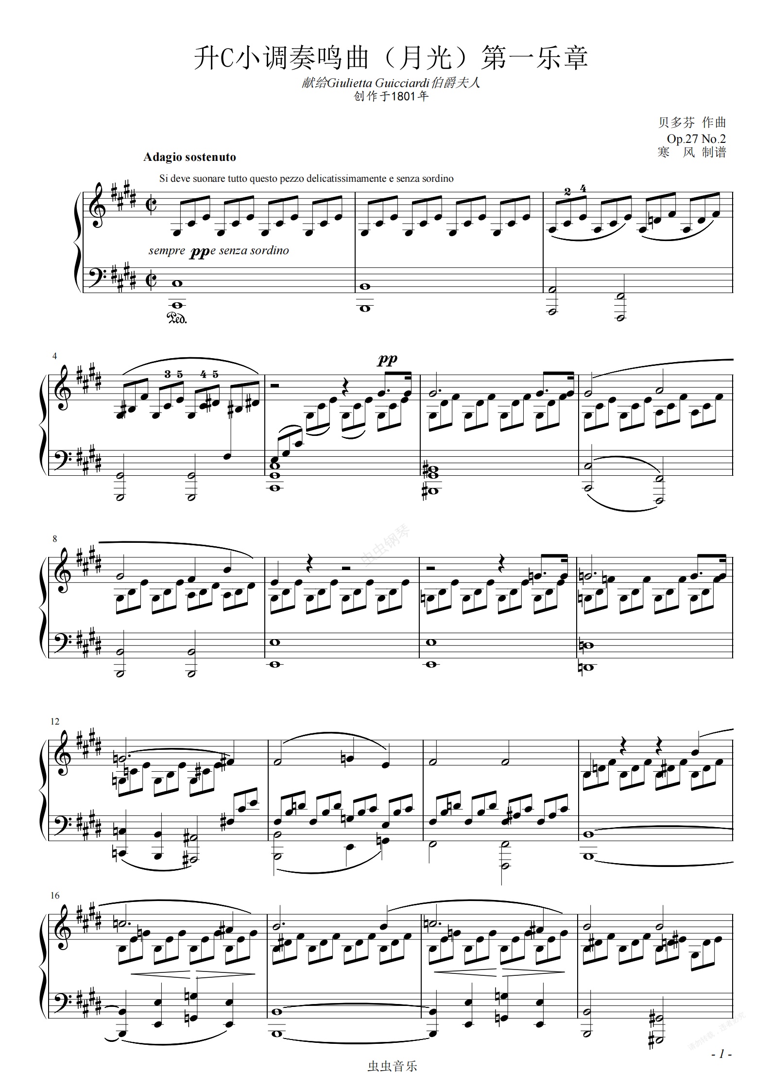 钢琴谱:贝多芬-升C小调月光奏鸣曲第一乐章