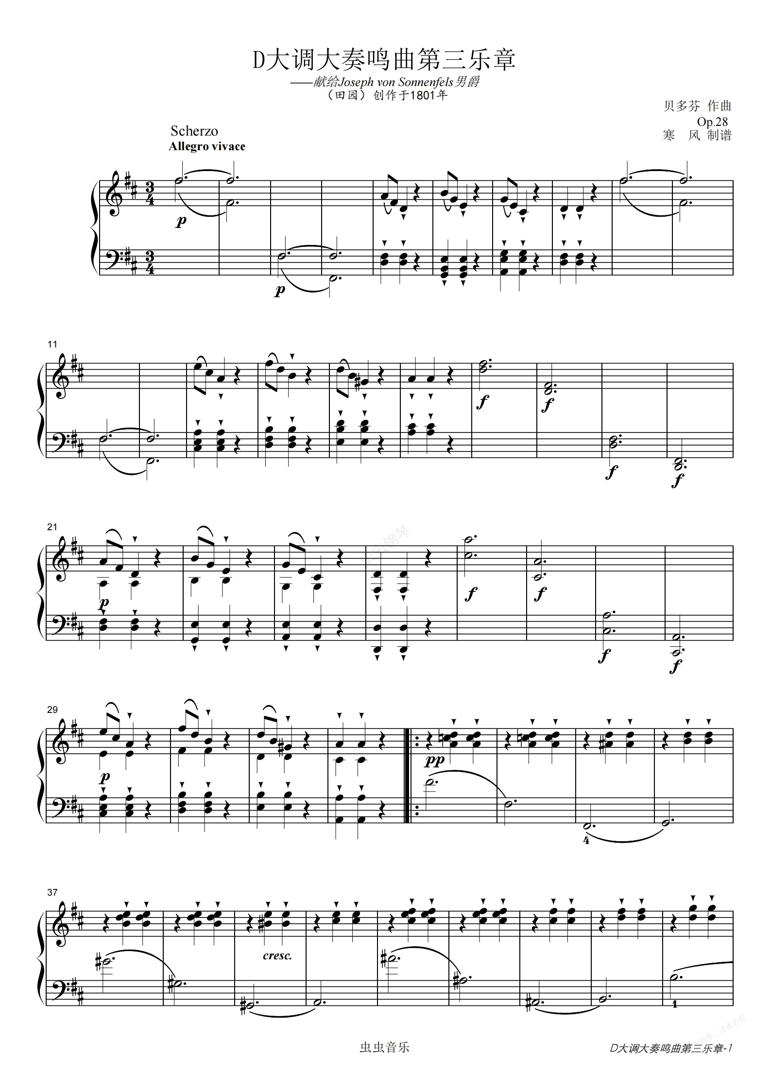 钢琴谱:贝多芬-D大调田园奏鸣曲第三乐章