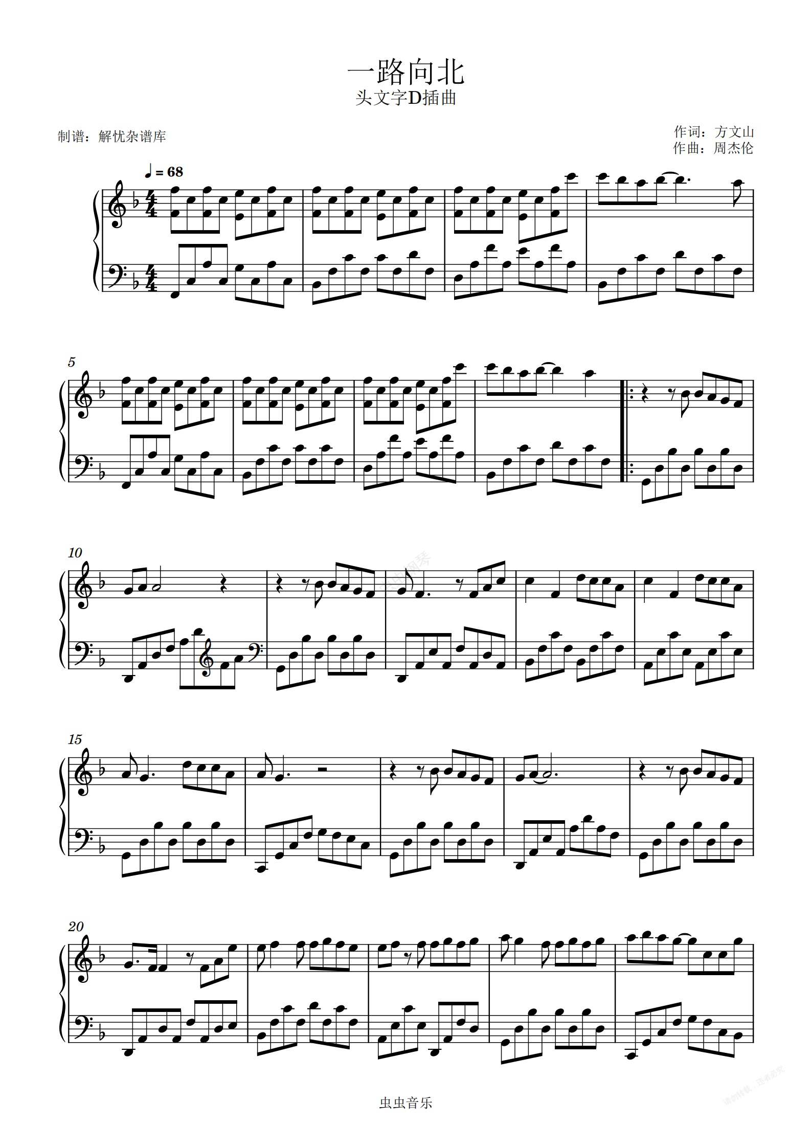 钢琴谱:一路向北