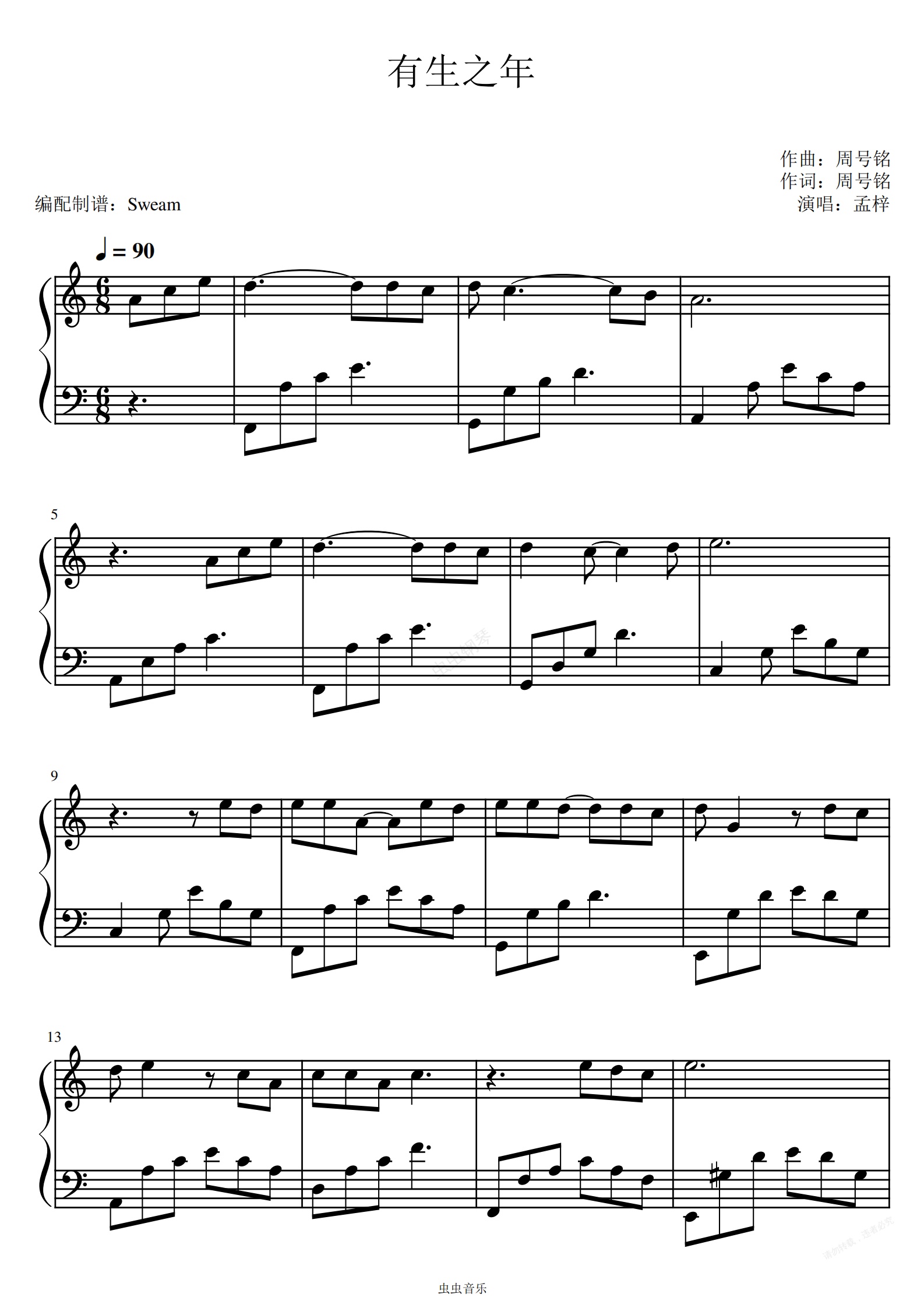 钢琴谱:有生之年(C调唯美优化精简版)