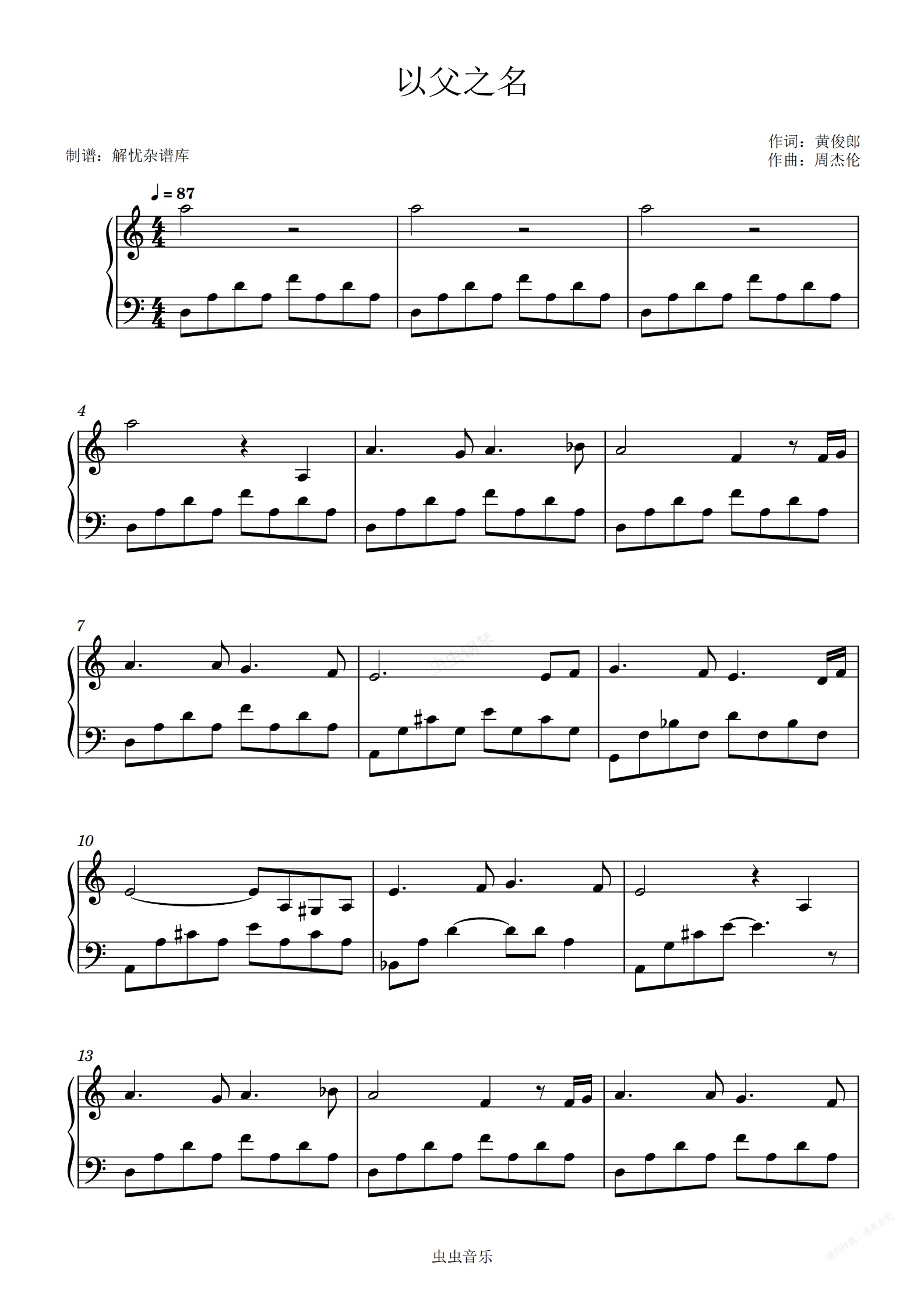 《以父之名》这首歌的曲风特殊好记,加上复古音乐钢琴等的特殊搭配,辅以意大利文与歌剧上的融合,曲调跳脱一般流行音乐风格,曲风上的特别更令人眼睛一亮。歌词内容以“天父、教父、父亲”三者为主轴,说明了教父的无奈、父亲的慈悲、天父的无私等救赎观念,说明一个人为了要到达上位者,就必须放弃一些该有的自由与观念,但往往在荣耀的背后得到得只有孤独的陪伴,过去纯真的日子已不复存在,也无法重来。《以父之名》故事性强,歌词用了很多不同的景物去呈现歌中“教父”那懊恼与痛苦的心境,令听者能有更立体更实在的感受。此歌的编曲方面亦富歌剧味道,与歌曲的整体感觉与主题配合。