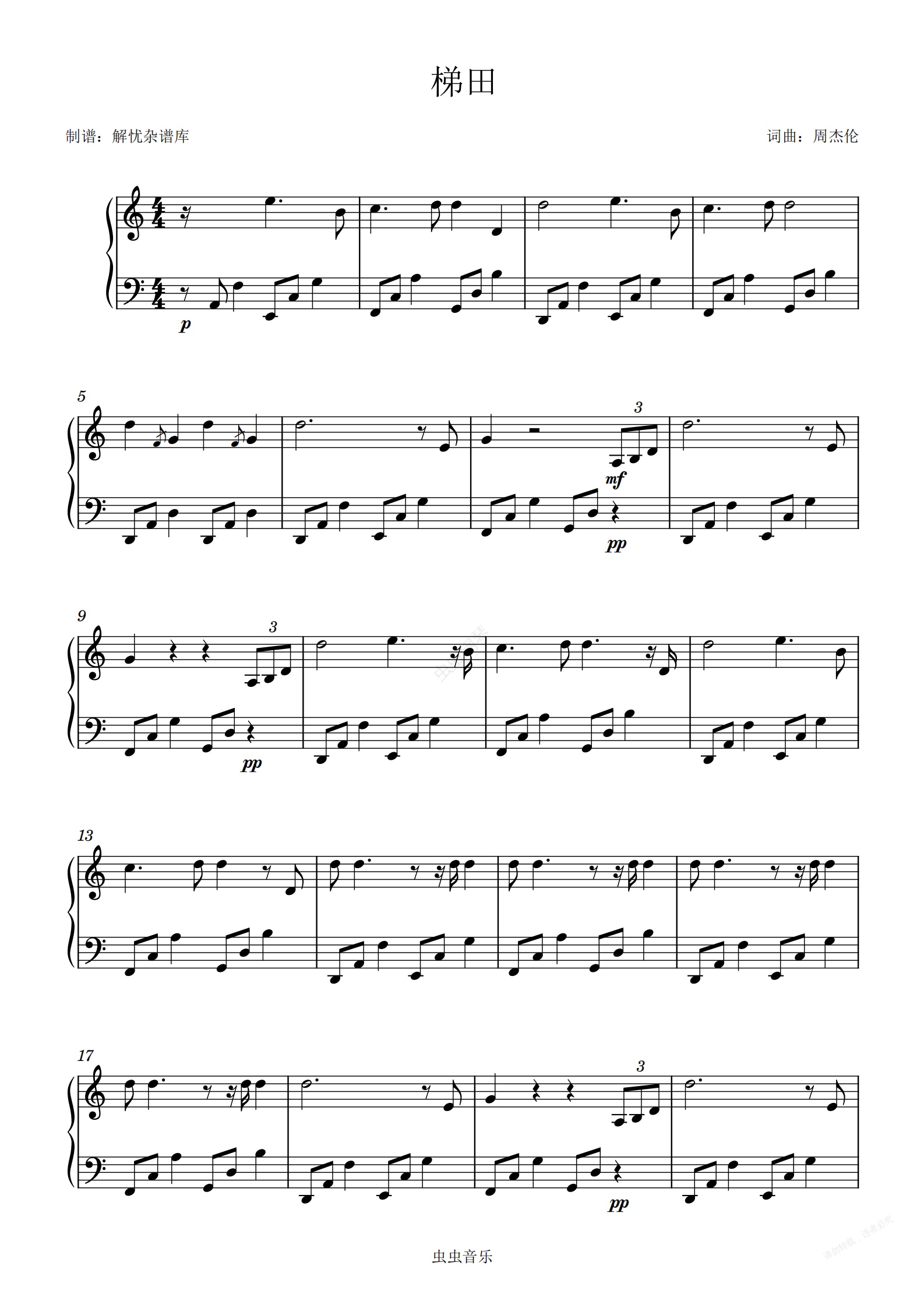 《梯田》这样的饶舌作品在歌词上的立意很好,但表现过于直接。这首歌曲周杰伦首创以原住民的合唱、中国民歌、古典钢琴在音乐上结合,歌词诙谐幽默。歌曲以行吟者归乡见闻的角度,带出原乡沧海桑田的变迁下,一种亘古不变的乡情,这首歌证明周杰伦是有其根源的,而且比很多人想象的深远得多。周杰伦以黑色幽默的讽刺贯穿歌曲,演唱过程中更是以一段段标新立异的美声高唱抒发感情。歌曲讽刺了人们破坏自然的丑恶行为,抒发了周杰伦对小时候的“梯田”、“牛啃草”、“小水沟”等一系列画面的深深怀念