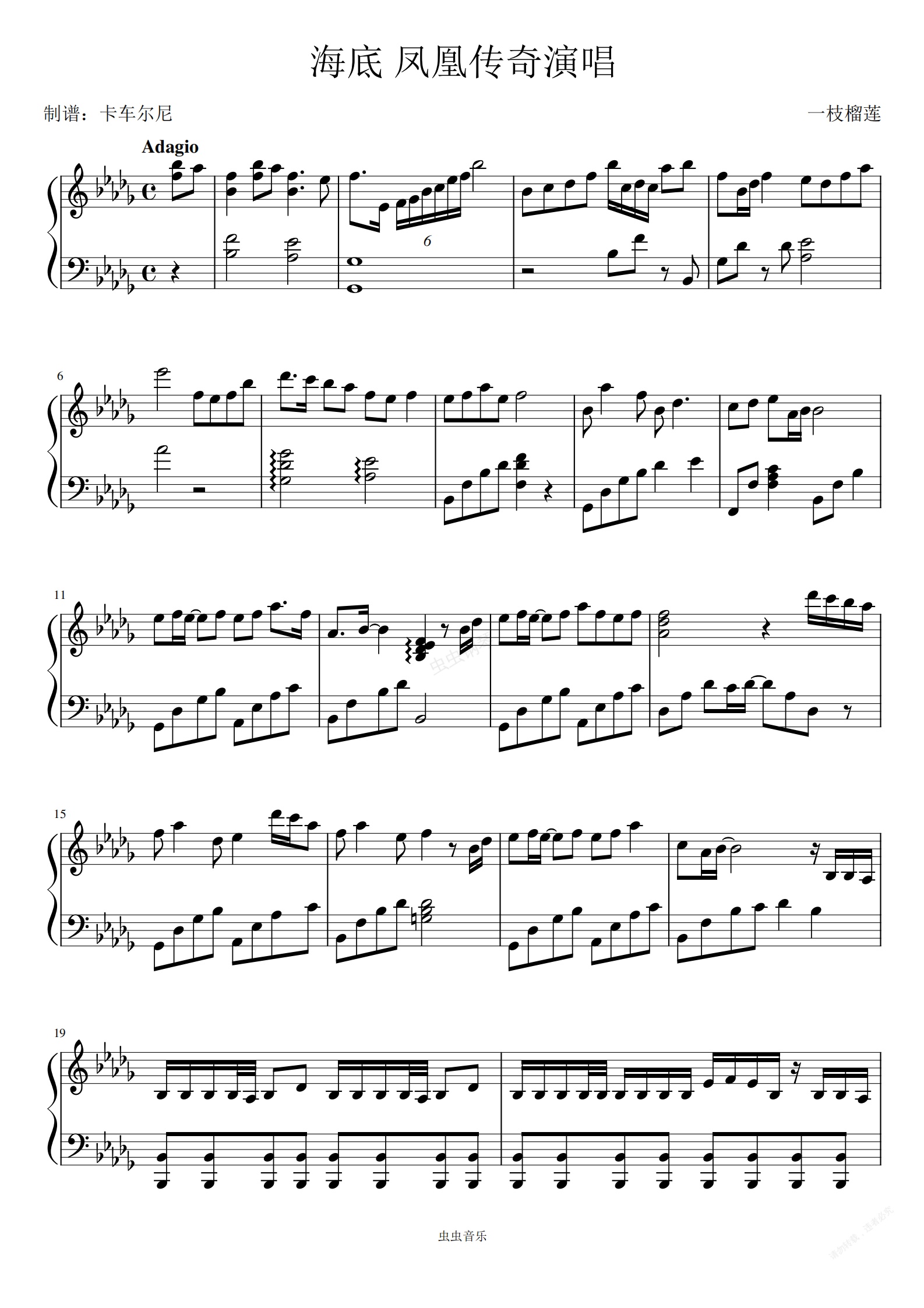 钢琴谱:《海底》凤凰传奇演唱版 原调