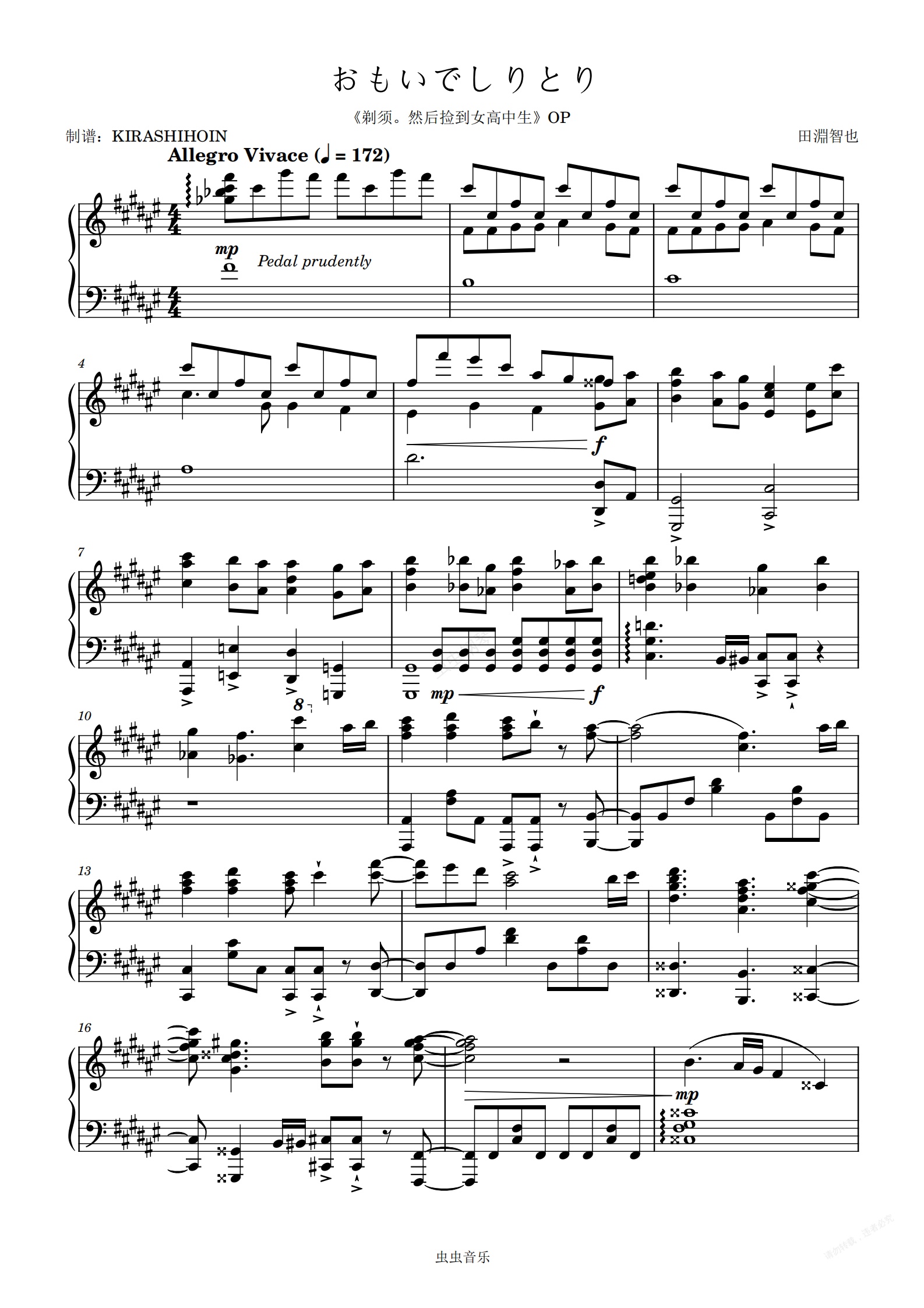 钢琴谱:おもいでしりとり(《剃须。然后捡到女高中生》OP)