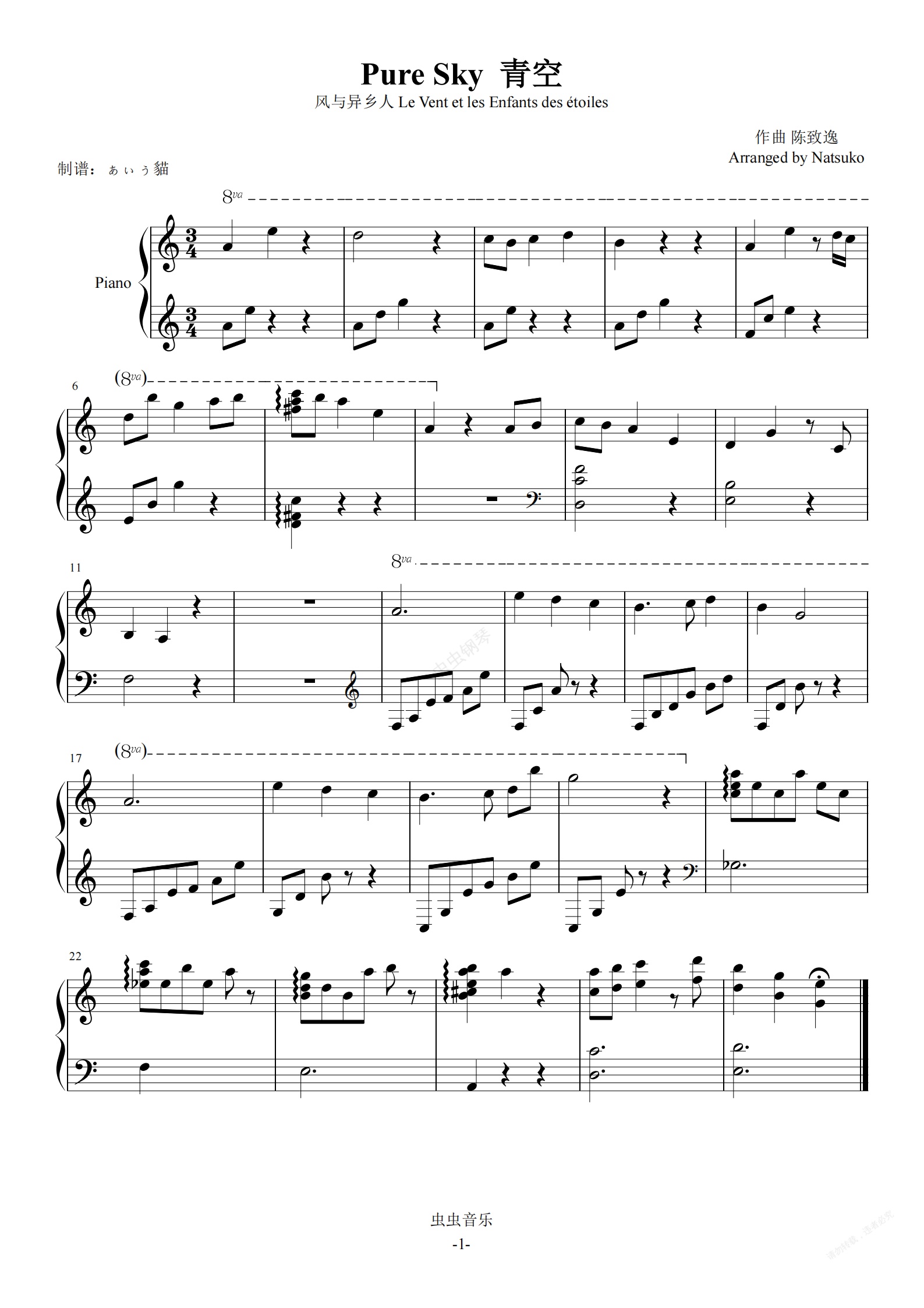 钢琴谱:原神-蒙德bgm-Pure Sky 青空